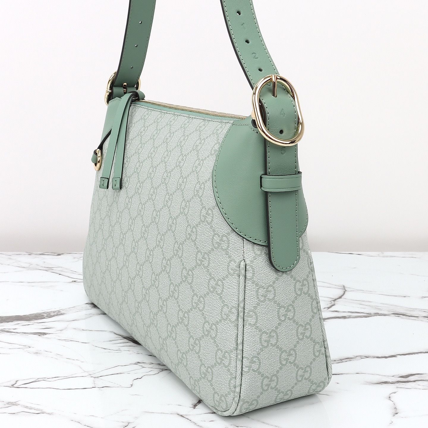 Designed for modern daily wear, this shoulder bag offers a clean and structured profile with enough room for essentials while maintaining a lightweight, easy-to-carry shape. Its elegant construction and timeless aesthetic make it an ideal accessory for day-to-night use, delivering a polished look that reflects Gucci’s signature blend of heritage and contemporary style.
