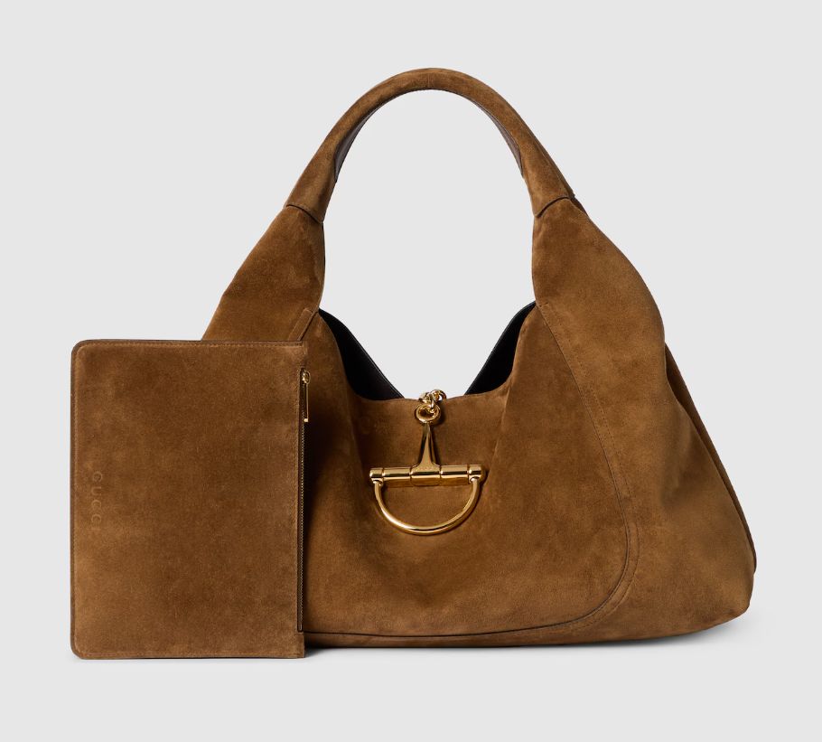 Designed for modern everyday use, this maxi shoulder bag is finished with Gucci’s signature half Horsebit magnetic closure, reimagining an iconic house code in a bold and functional way. The spacious interior includes a detachable pouch for convenient organization, making this bag an elegant choice for daily essentials, travel, or statement styling from day to night.