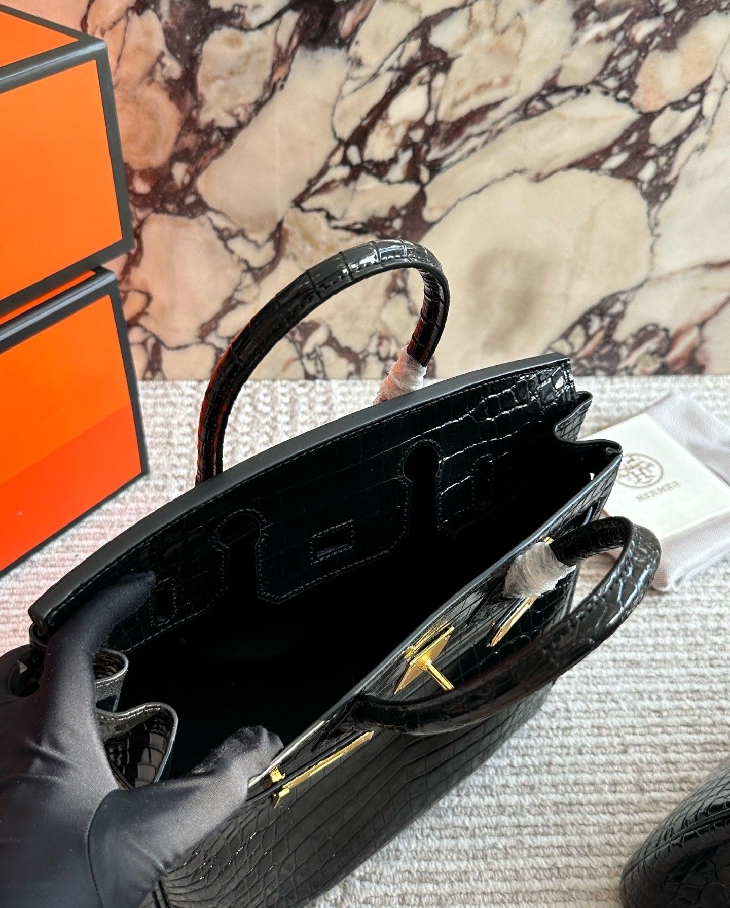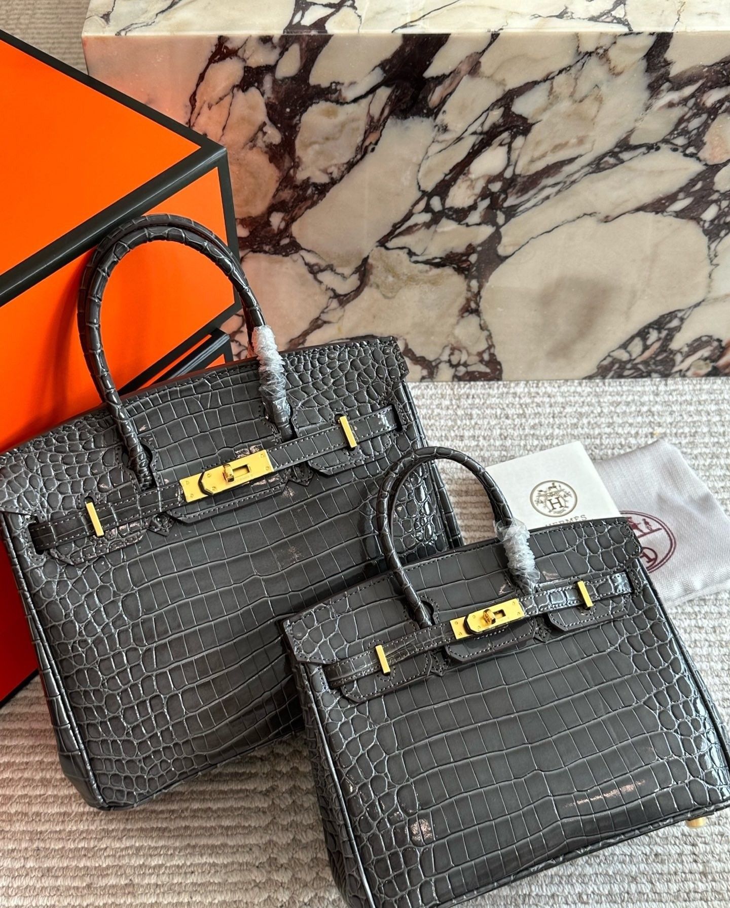 • Silhouette: Iconic structured Birkin tote design