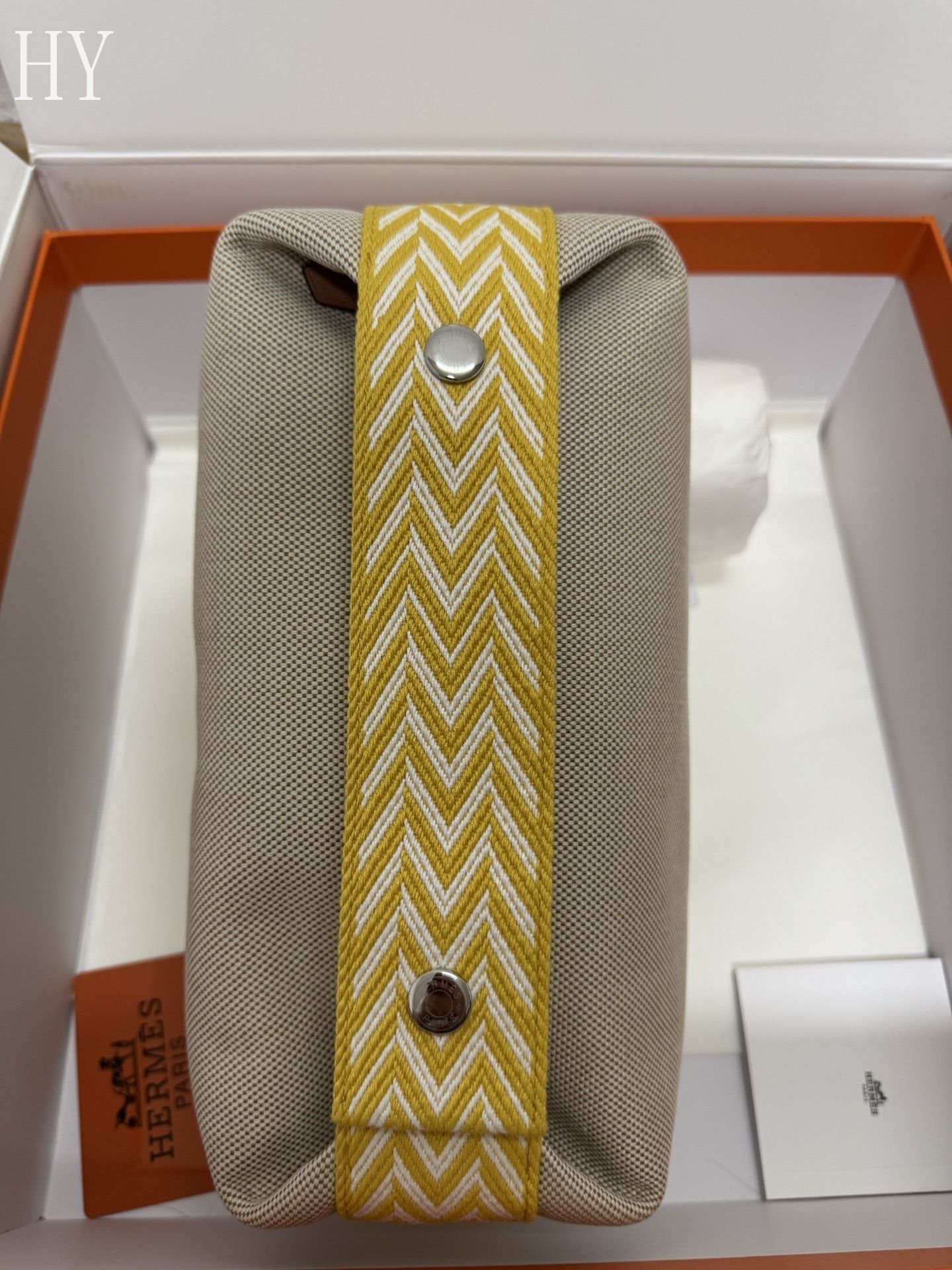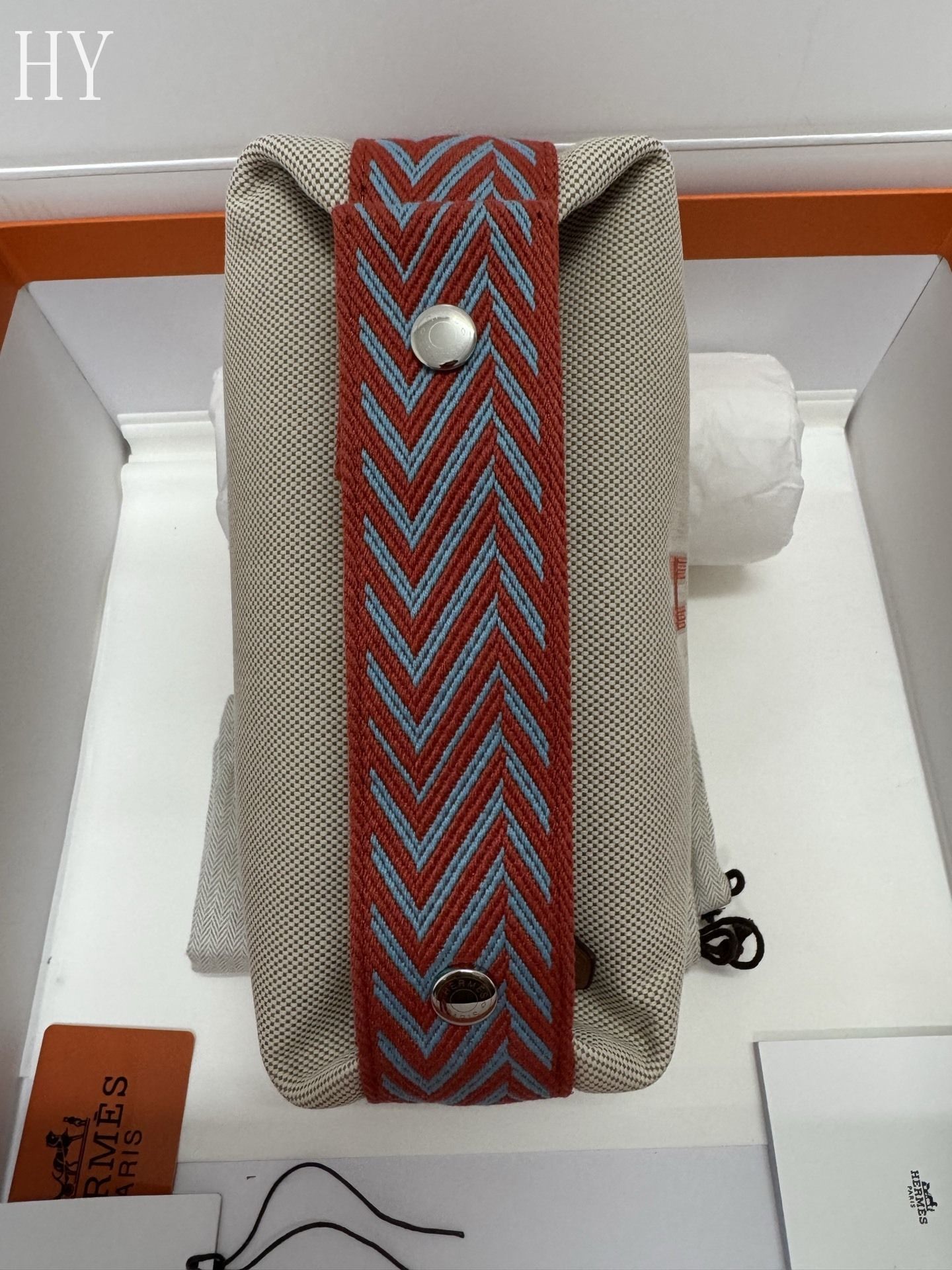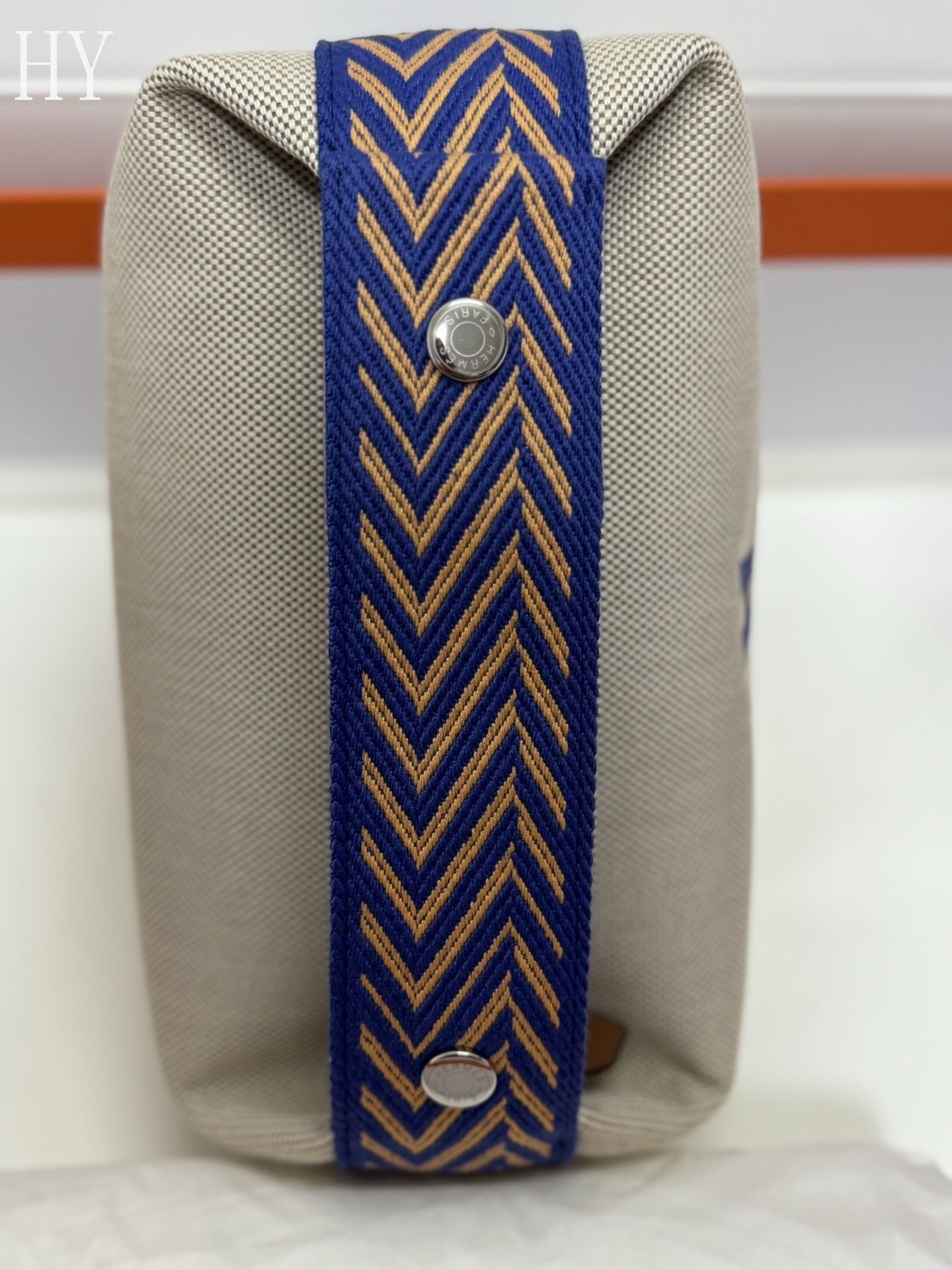 - Detail: Embroidered H motif