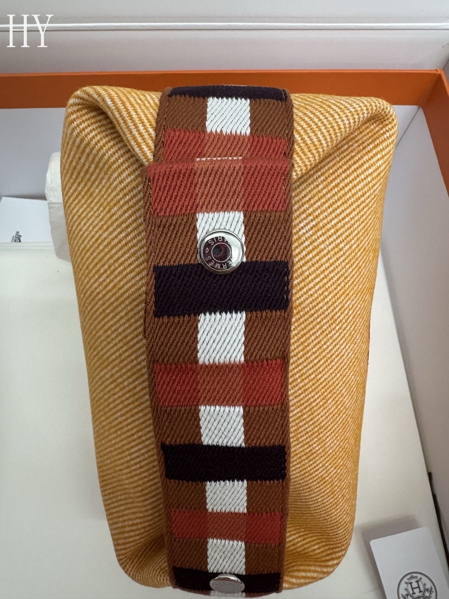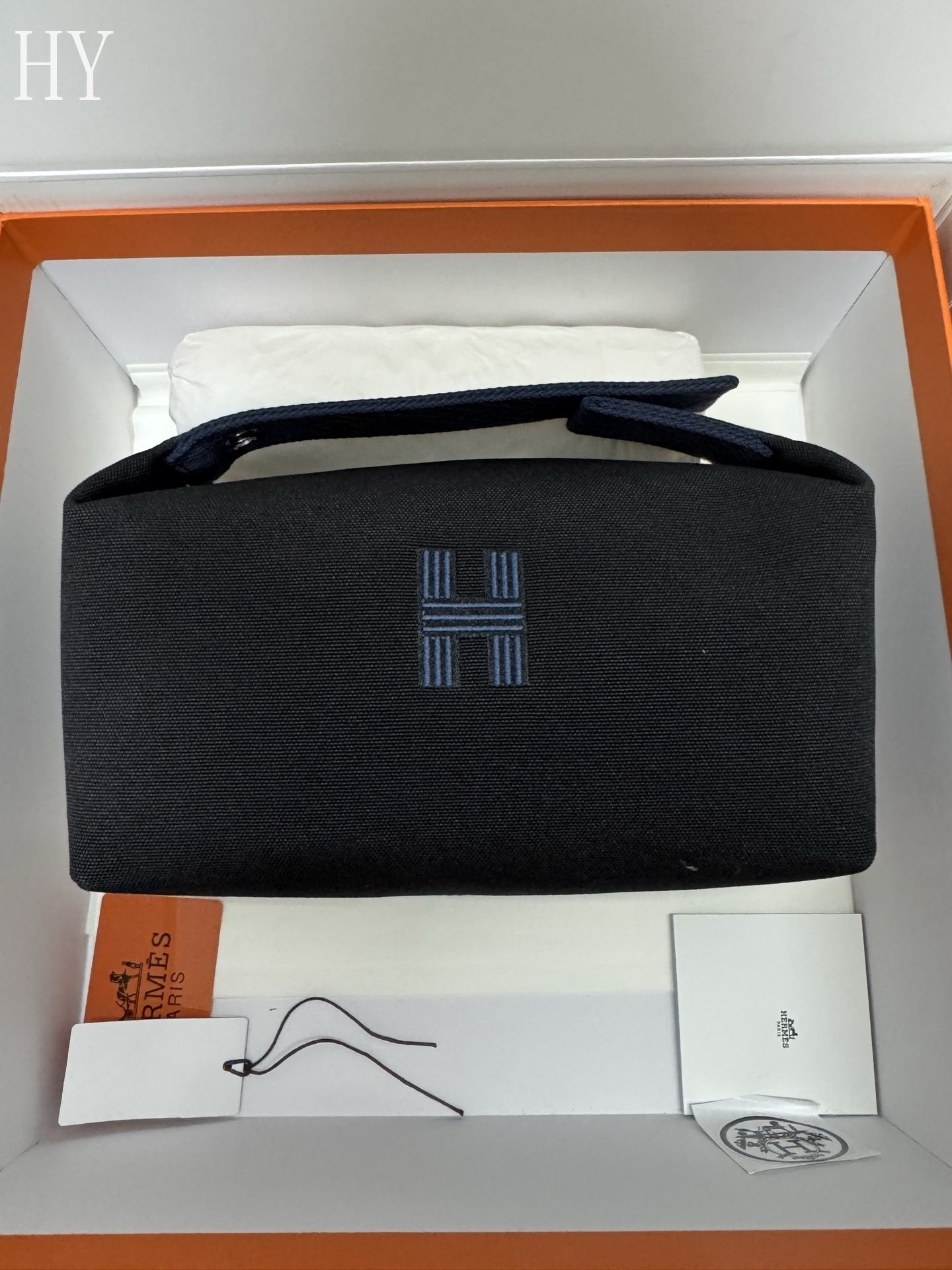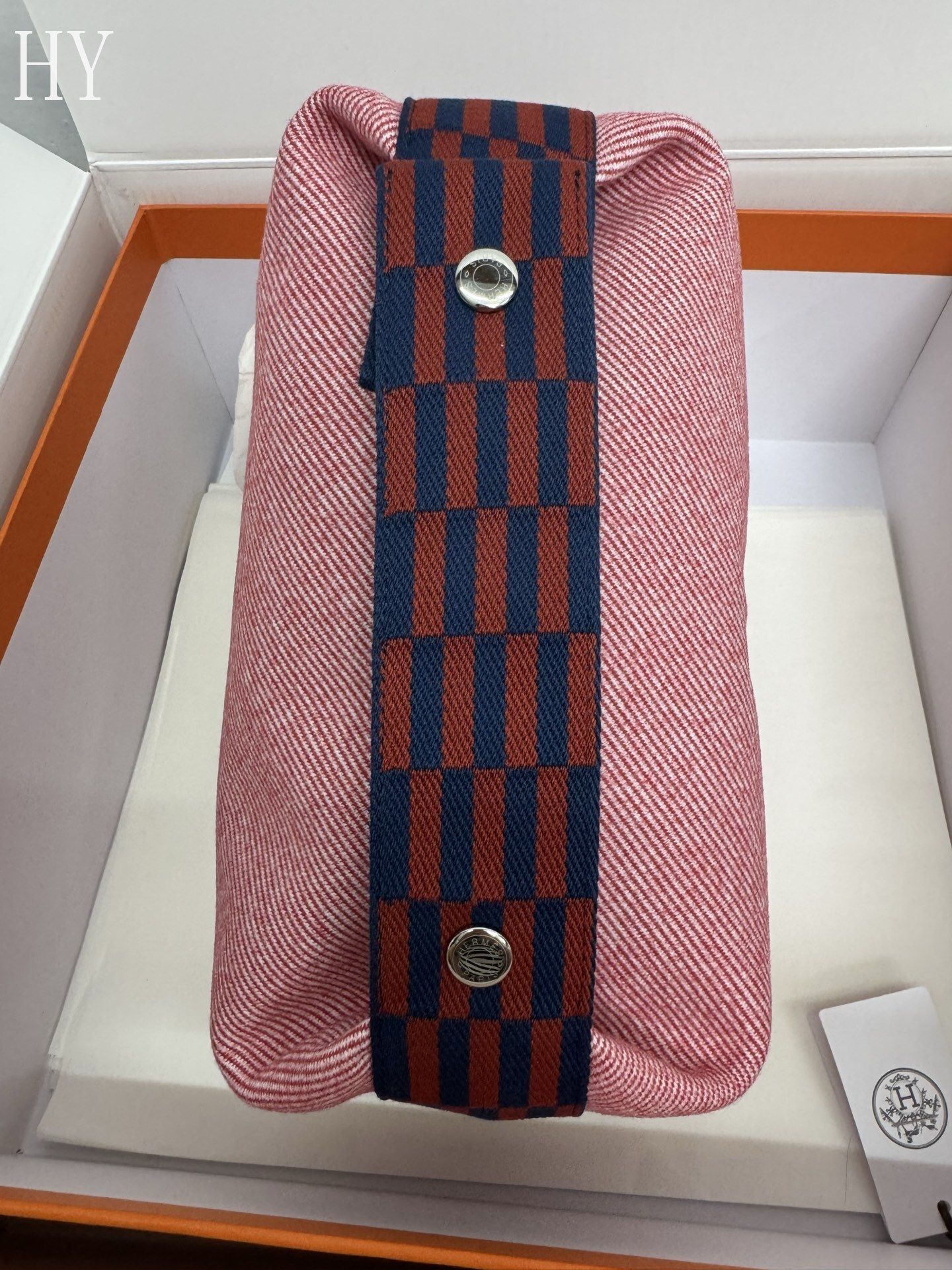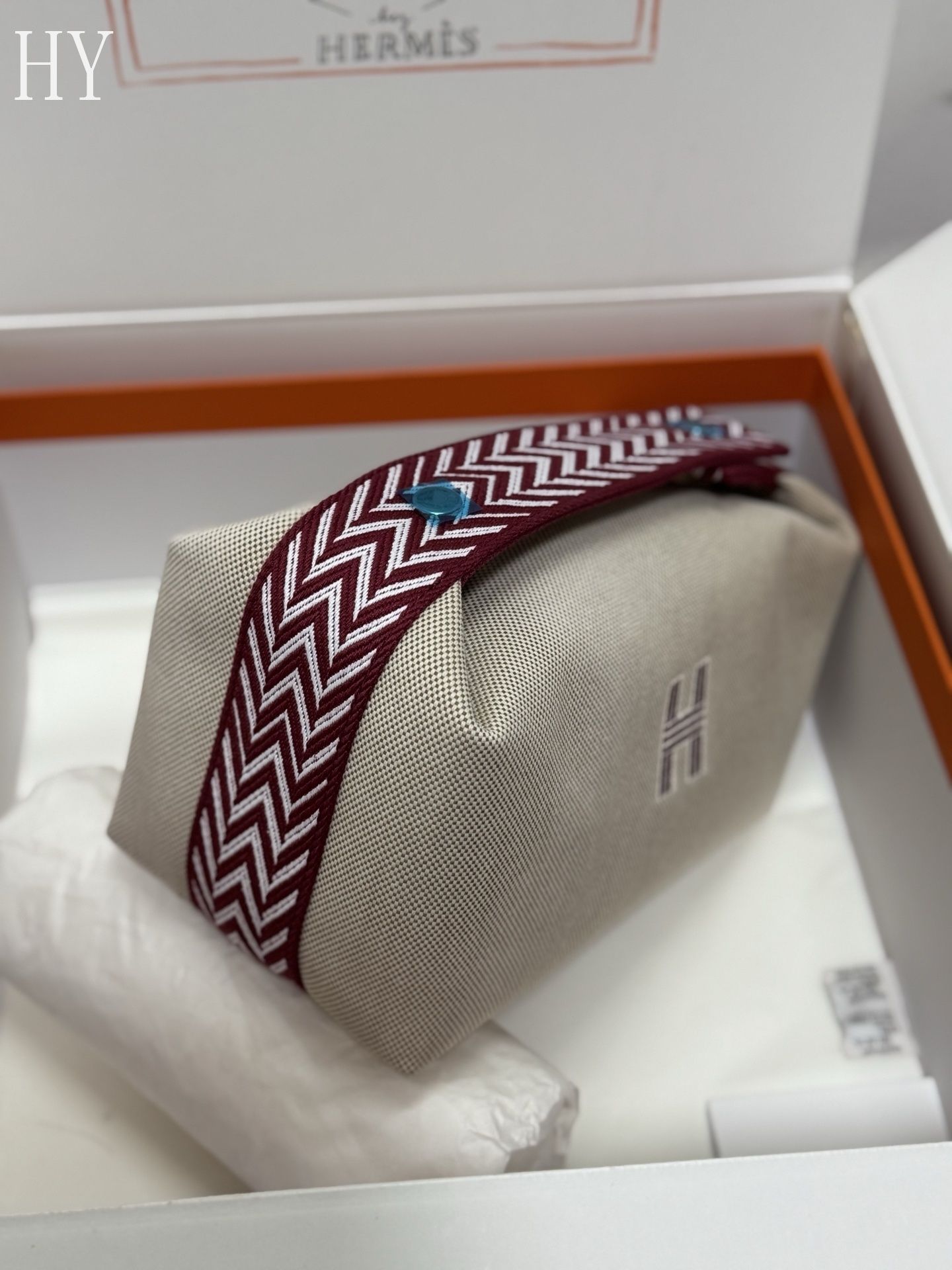 - Detail: Embroidered H motif