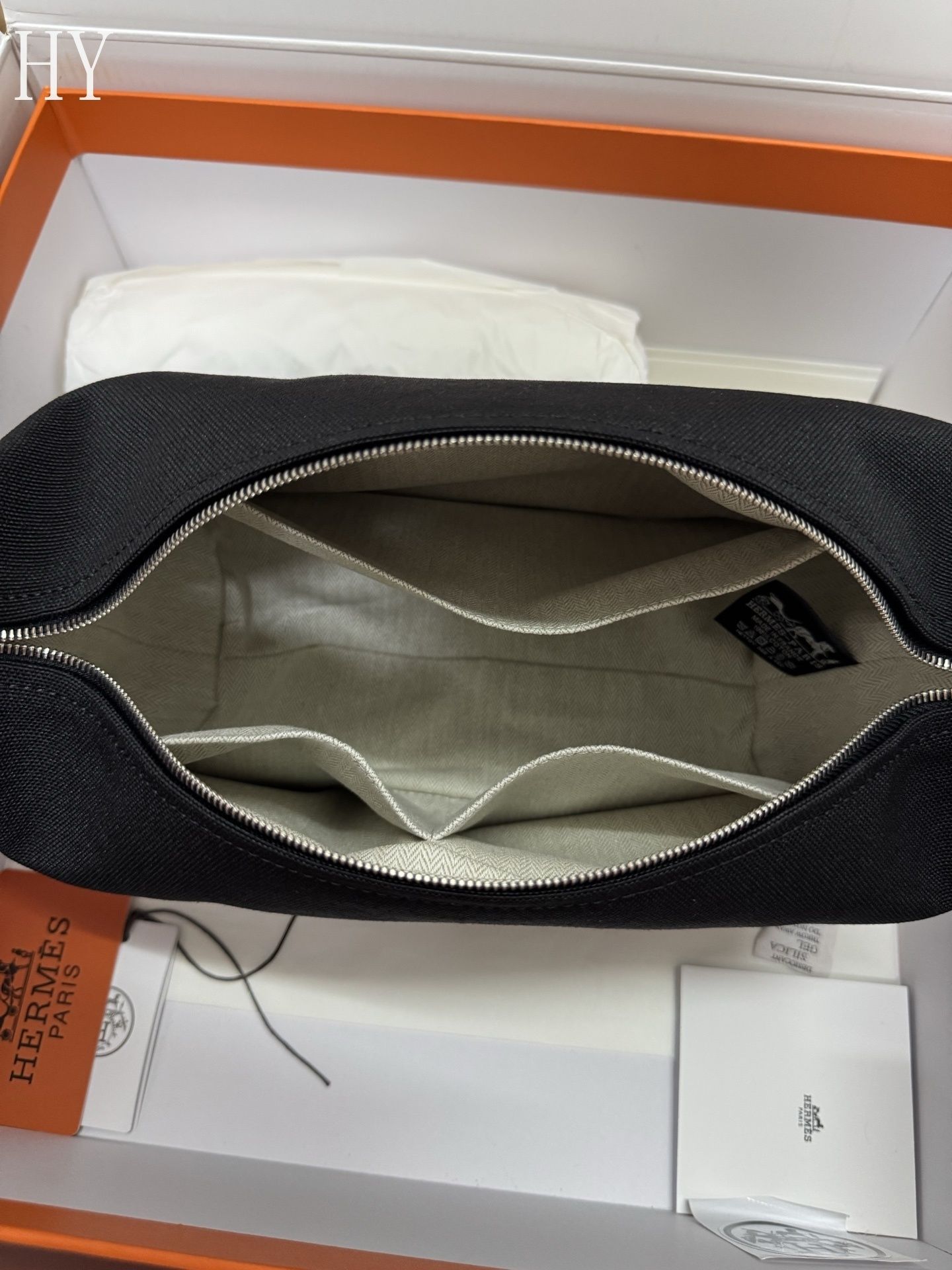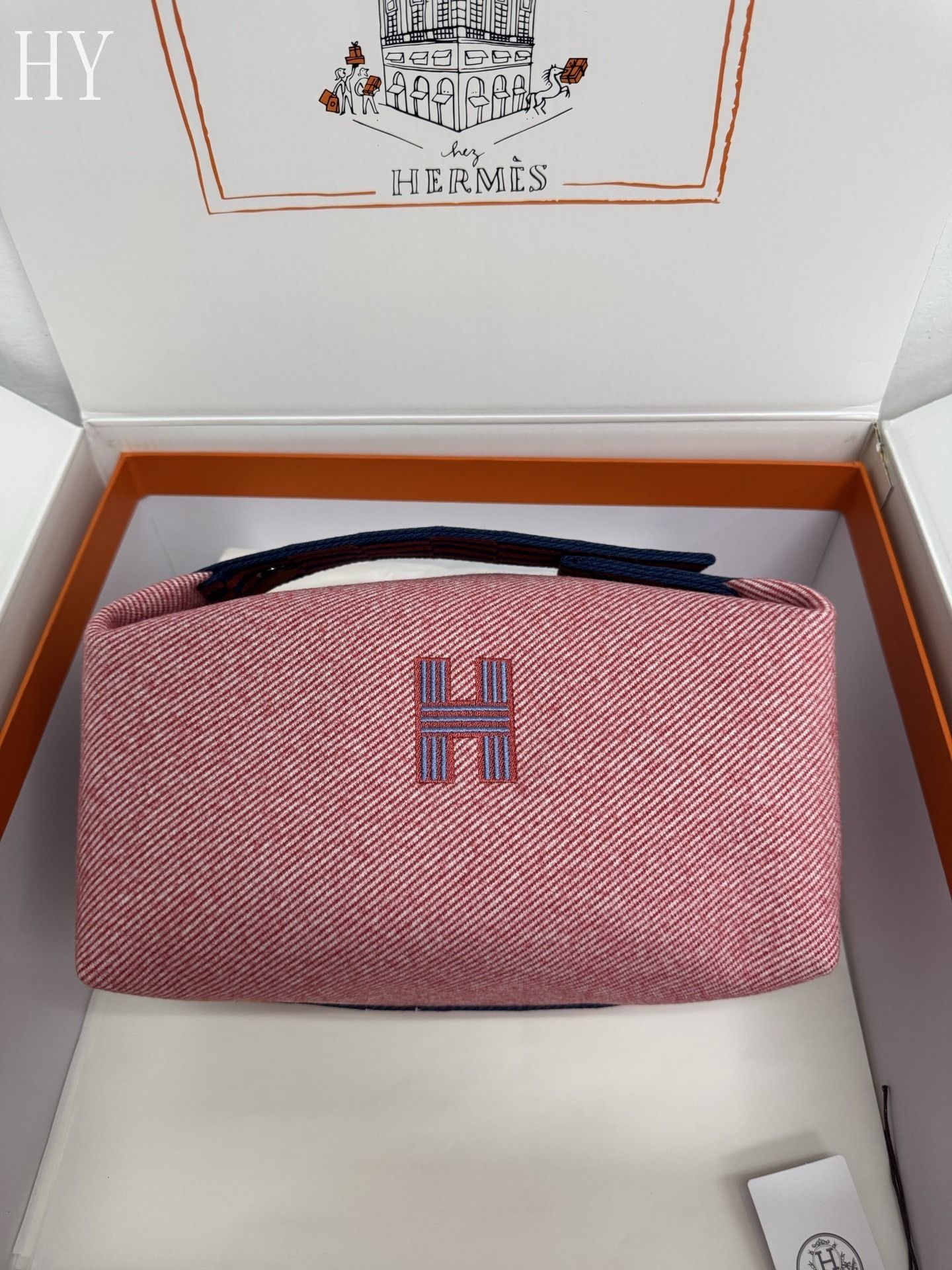 Designed for practical luxury, this large case features a herringbone cotton lining, three interior pockets, and a versatile hanging handle that closes in multiple ways for convenience on the go. Its spacious proportions make it perfect for storing toiletries, beauty essentials, or travel accessories, while the refined canvas finish keeps the look timeless, functional, and effortlessly sophisticated.
