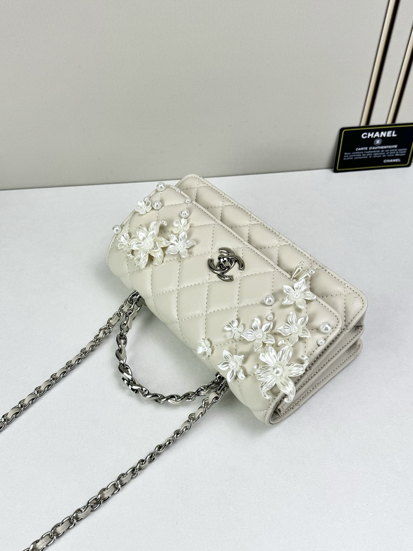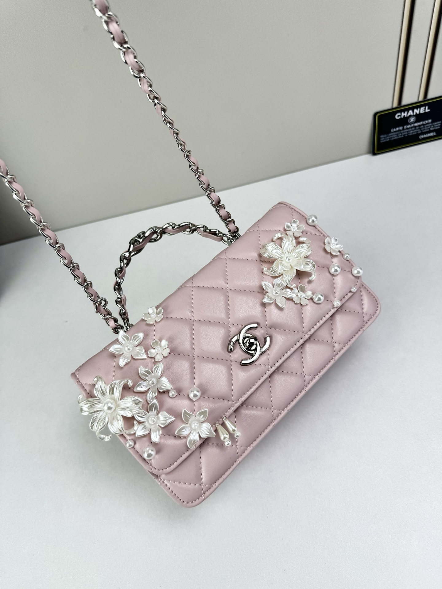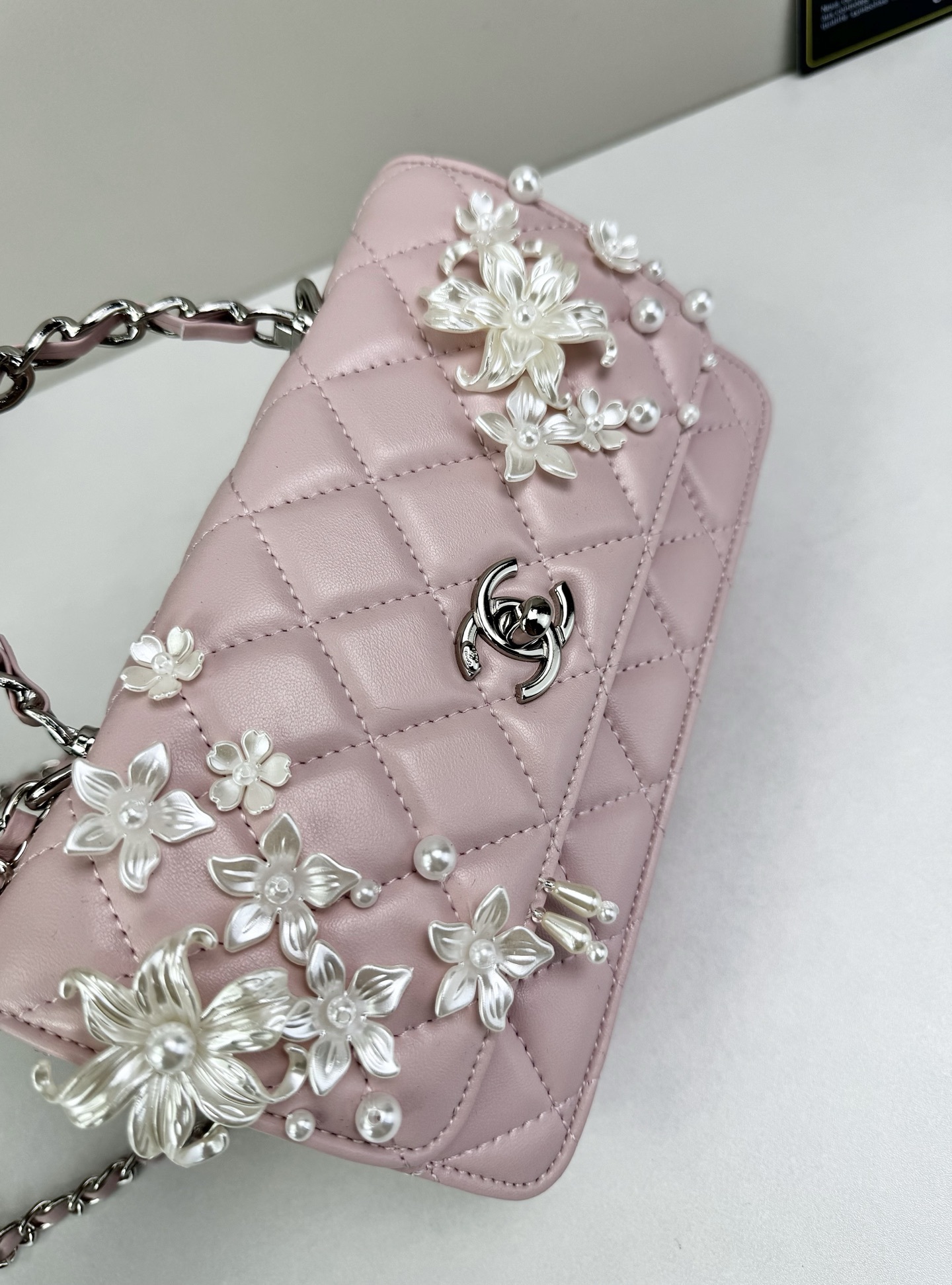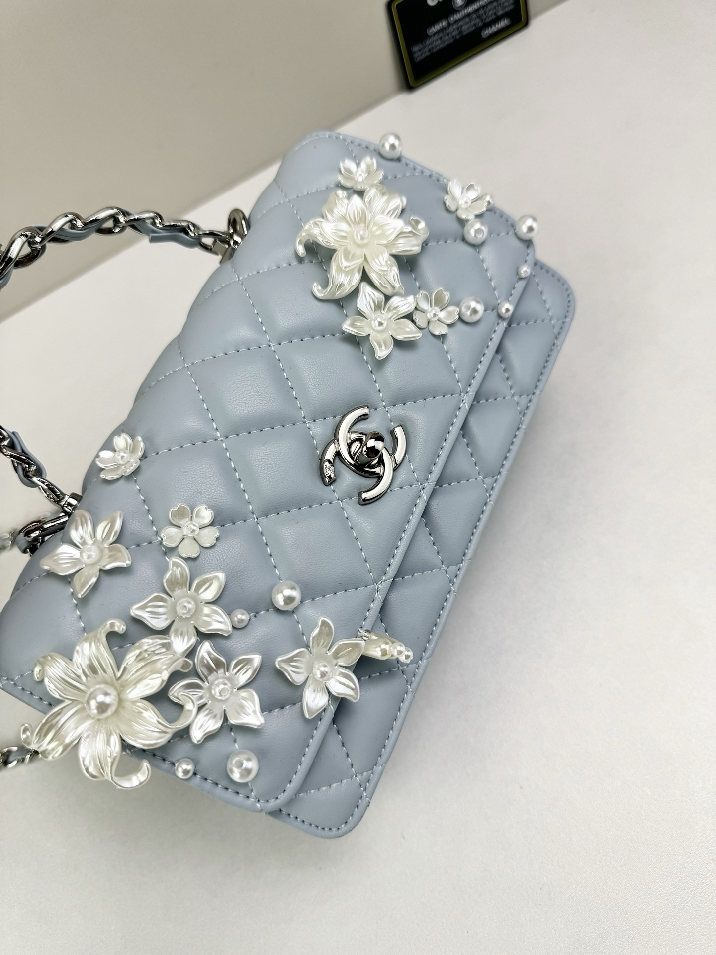 Timeless elegance meets delicate artistry — Luxury CN Handbag 6684 reimagines the iconic quilted silhouette with floral embellishments and refined feminine charm.
