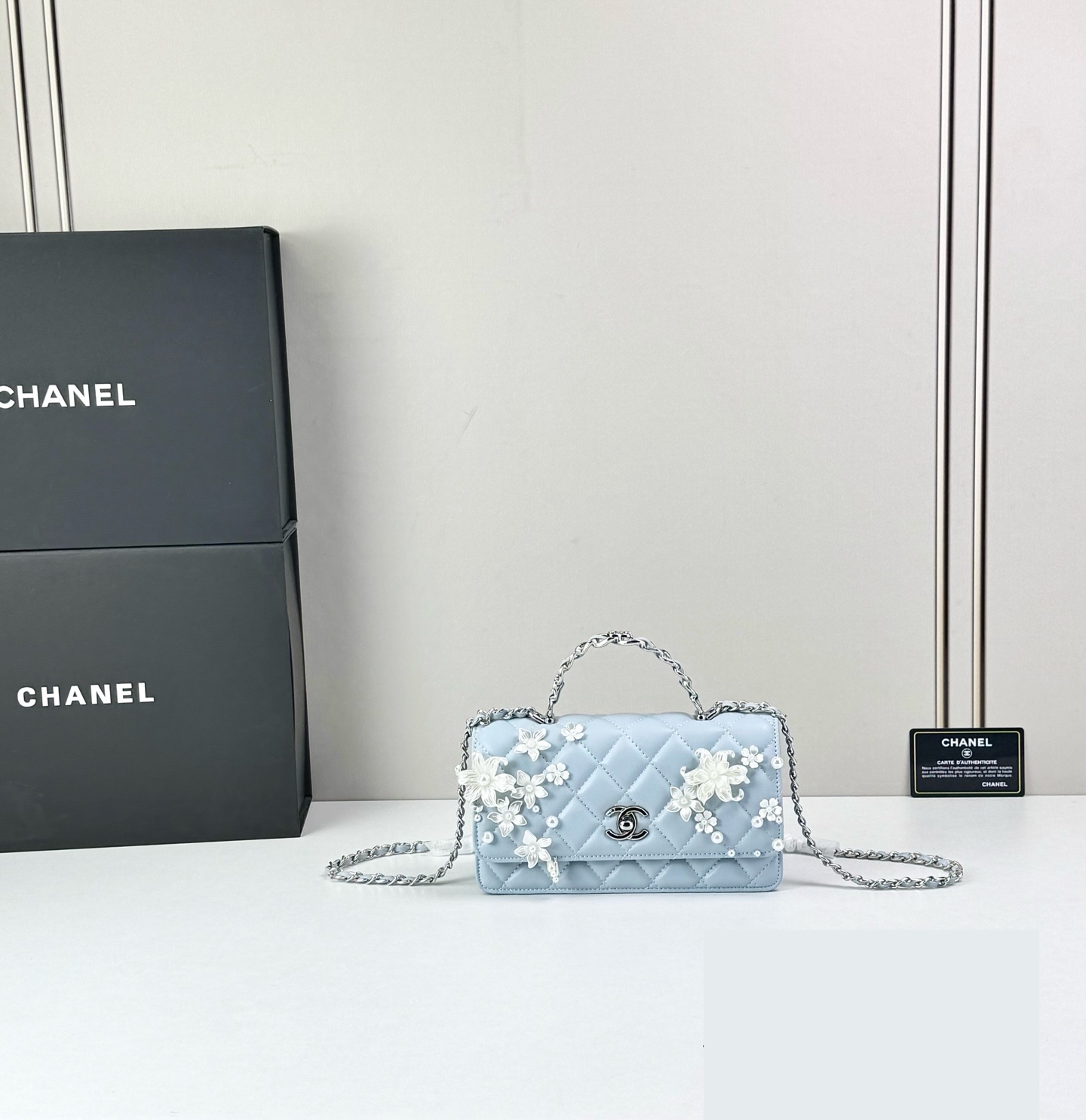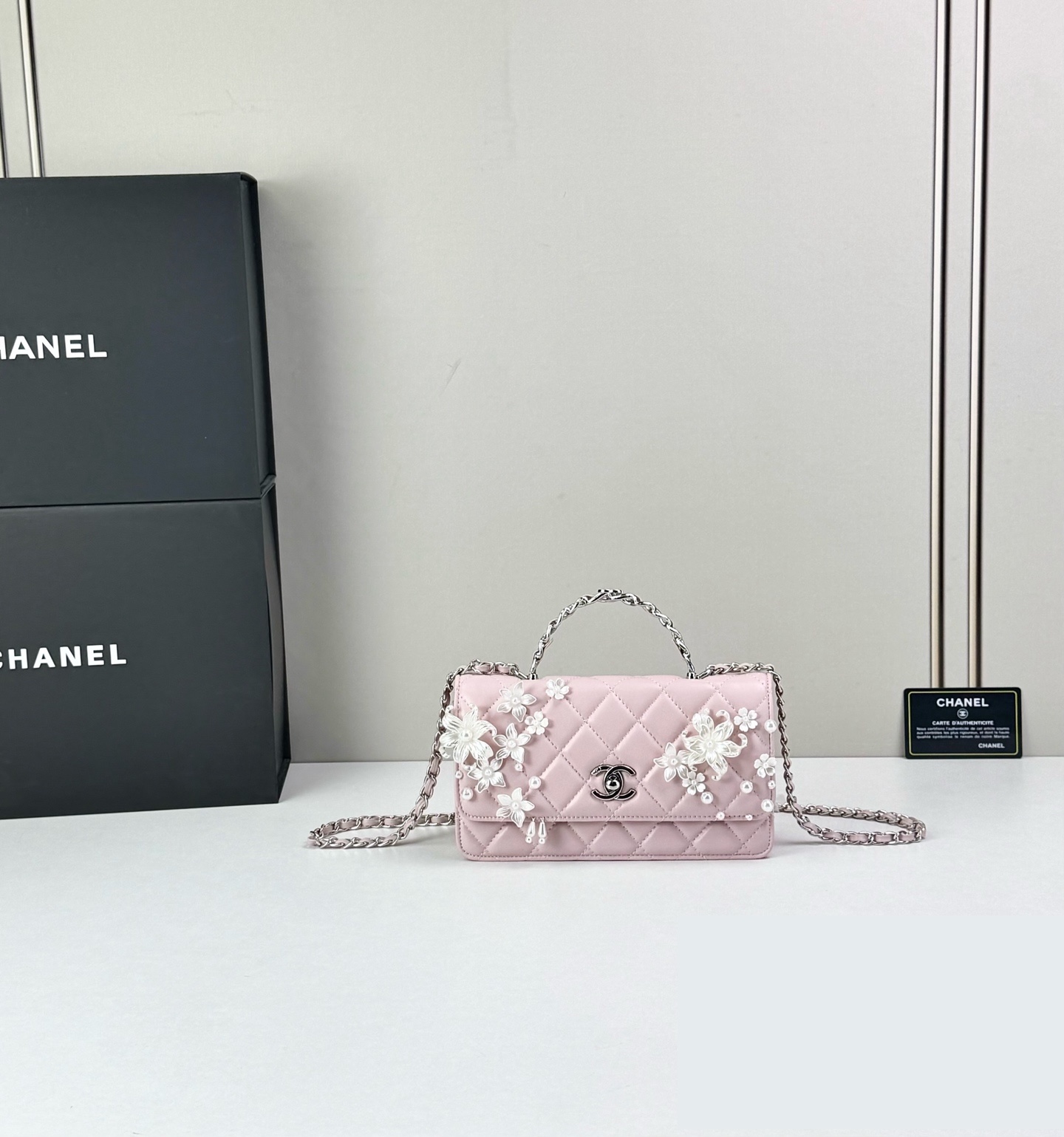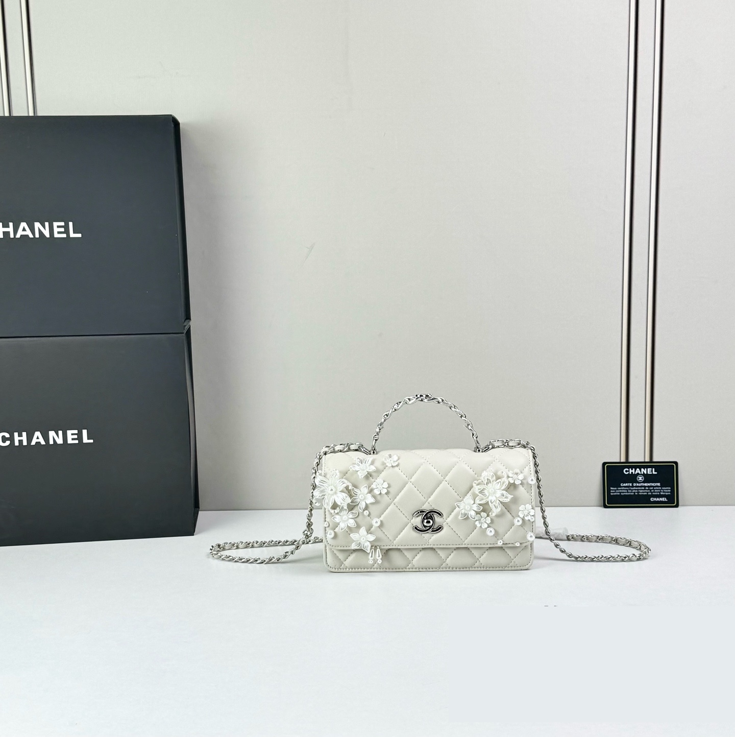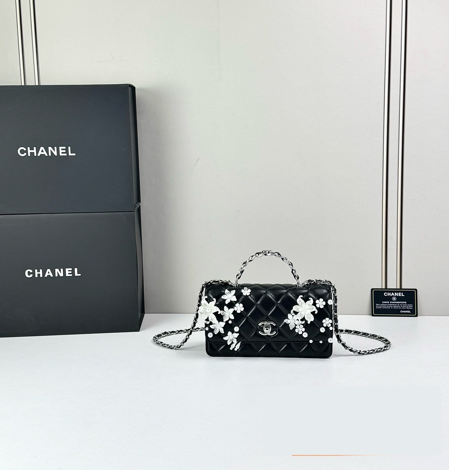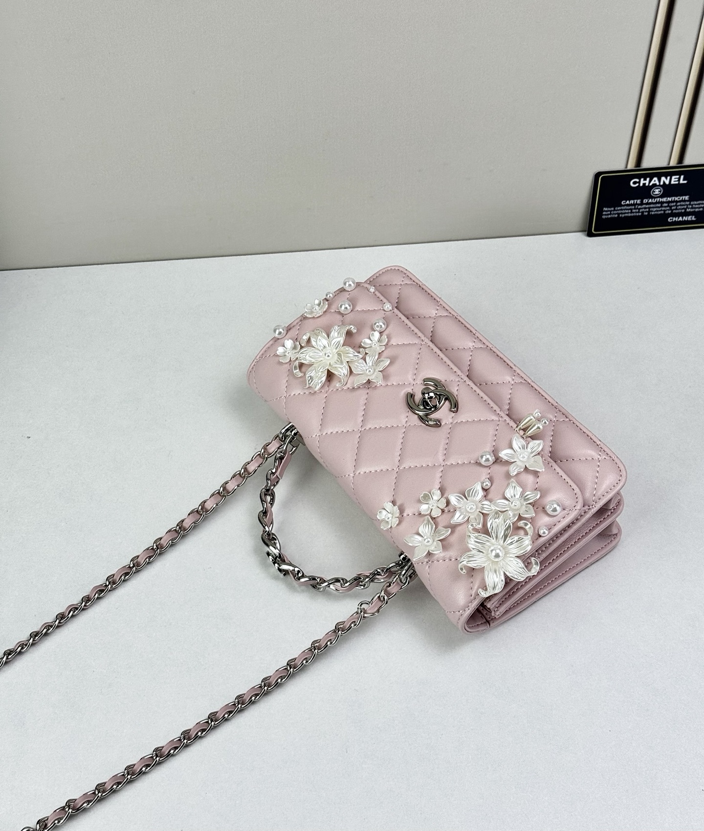 Timeless elegance meets delicate artistry — Luxury CN Handbag 6684 reimagines the iconic quilted silhouette with floral embellishments and refined feminine charm.