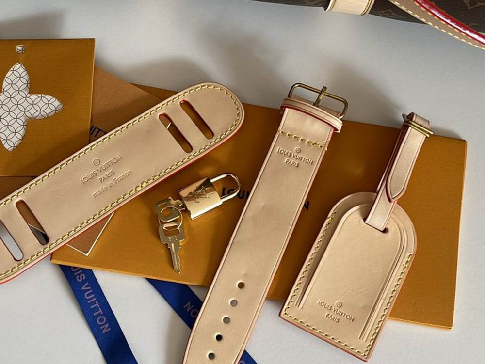 • Material: Monogram coated canvas with natural leather trim