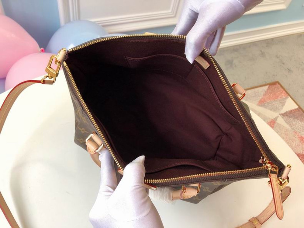 This Turenne MM is crafted from iconic Monogram coated canvas, complemented by natural leather trim and gold-tone hardware for a classic yet polished look. The structured silhouette is enhanced by elegant front pleats and rounded handles, creating a feminine and sophisticated aesthetic.