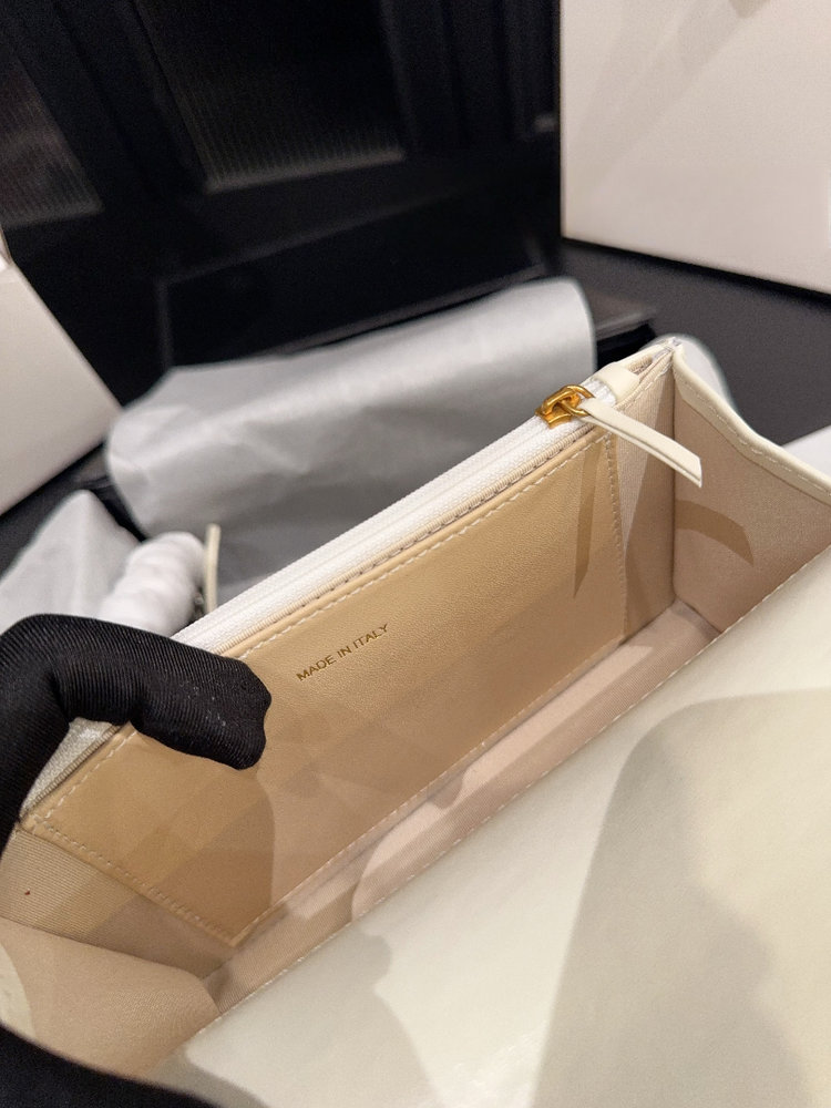 Designed for convenience and style, the compact interior features organized compartments for cards, cash, and small essentials such as keys or lipstick. The delicate chain shoulder strap allows the bag to be worn comfortably crossbody or on the shoulder, making it an ideal accessory for both daytime outings and evening occasions.