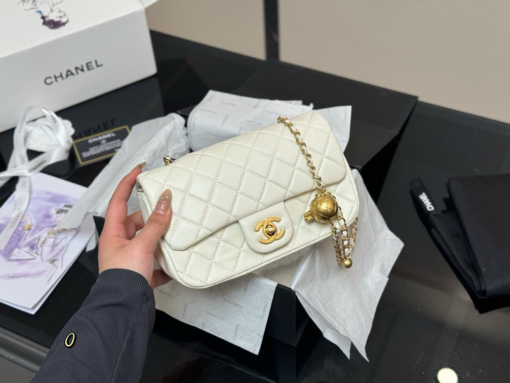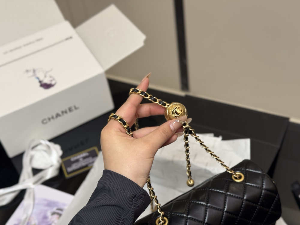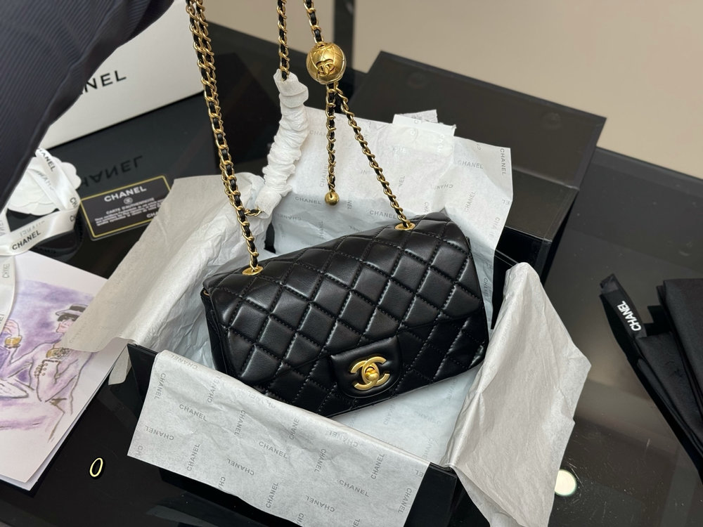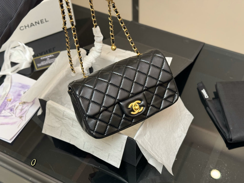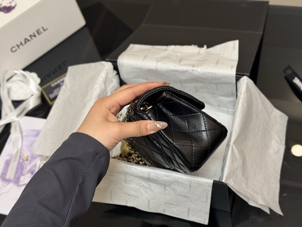 Despite its compact size, the thoughtfully designed interior provides space for essentials such as a phone, cards, keys, and small personal items. The iconic chain strap allows the bag to be worn comfortably on the shoulder or crossbody, making it a versatile choice for day-to-night styling.