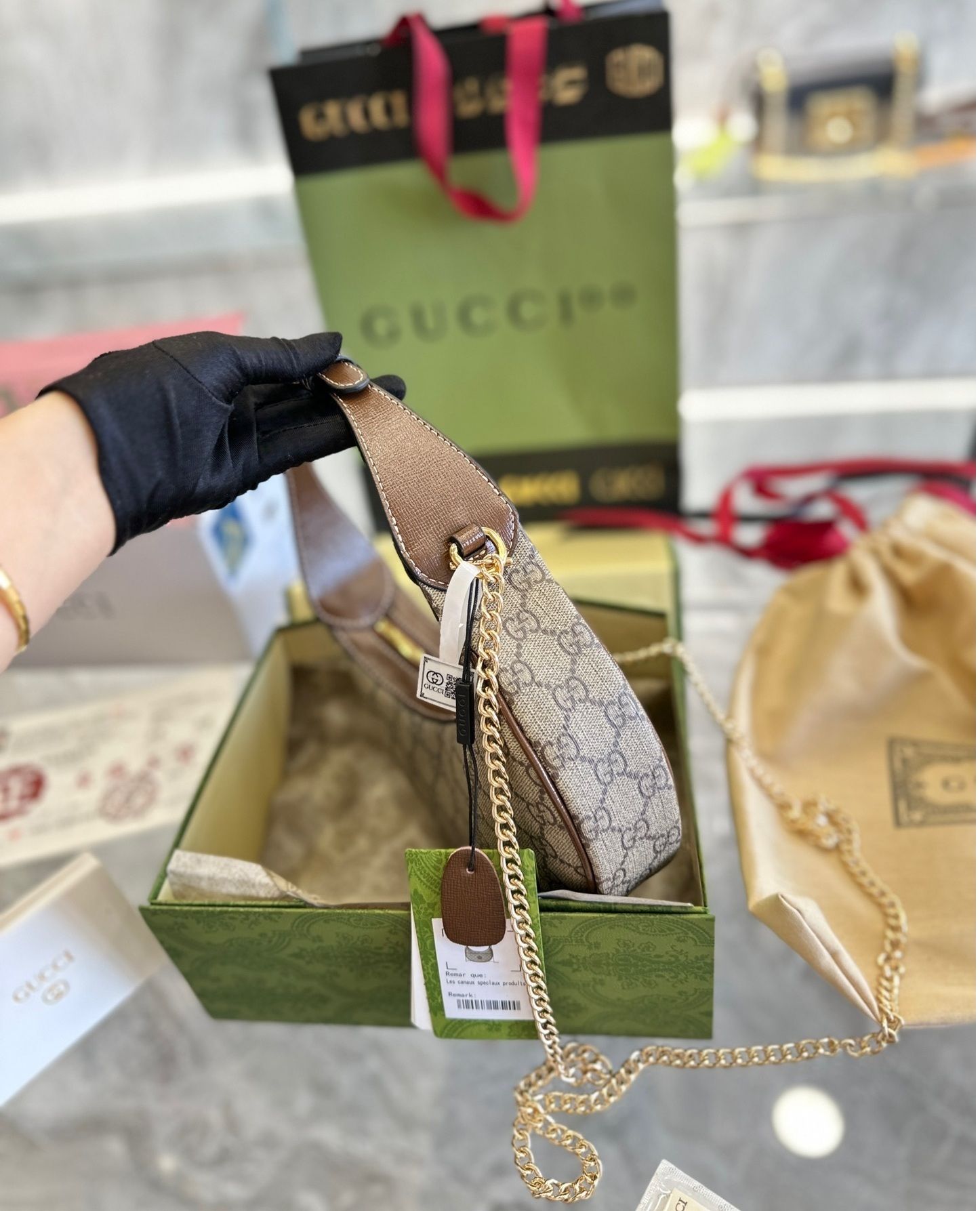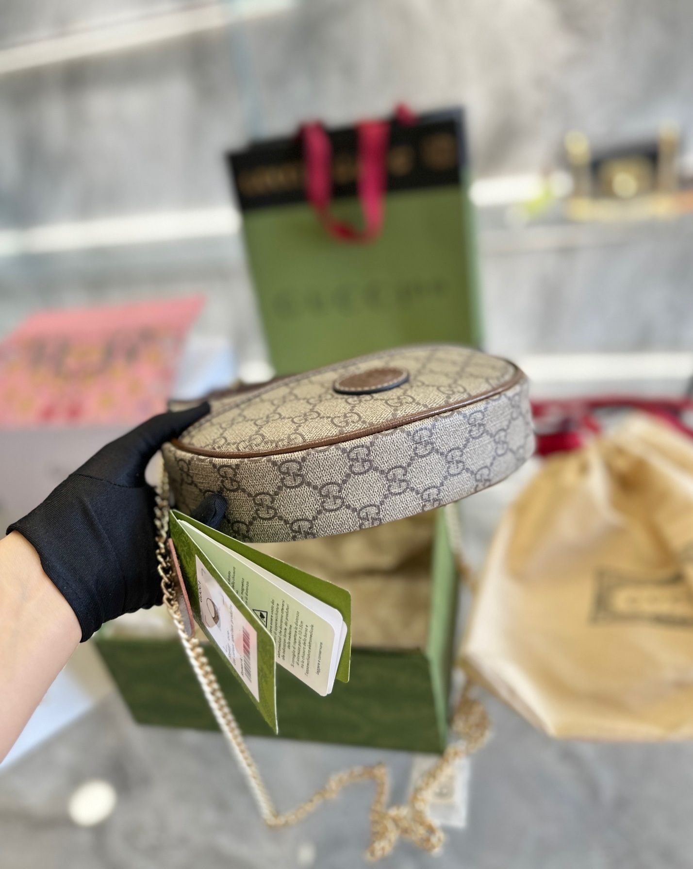 - Material: Premium leather or GG canvas with leather trim