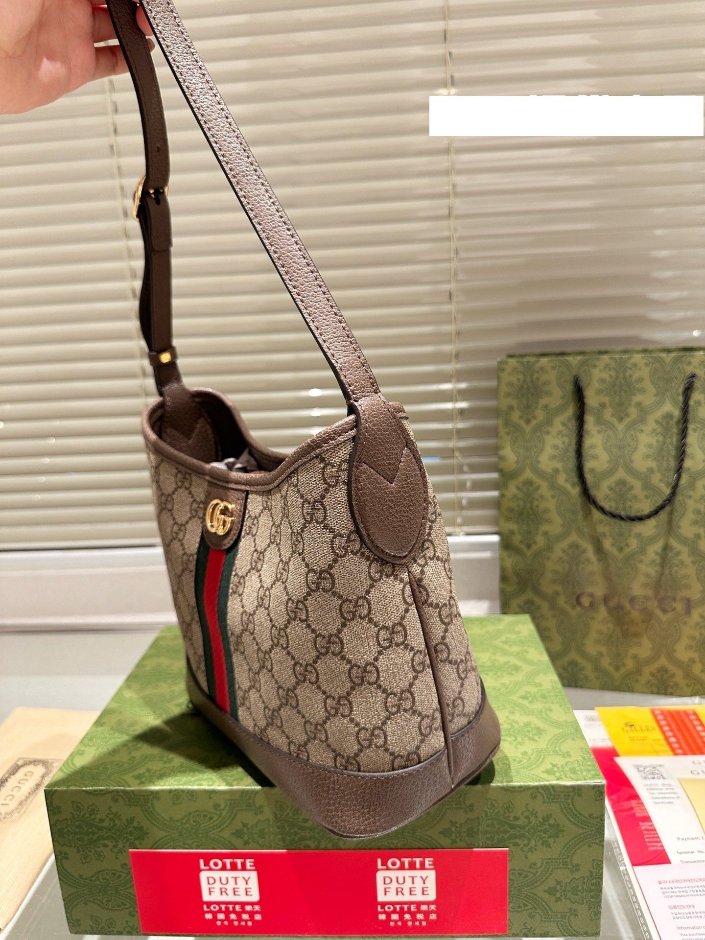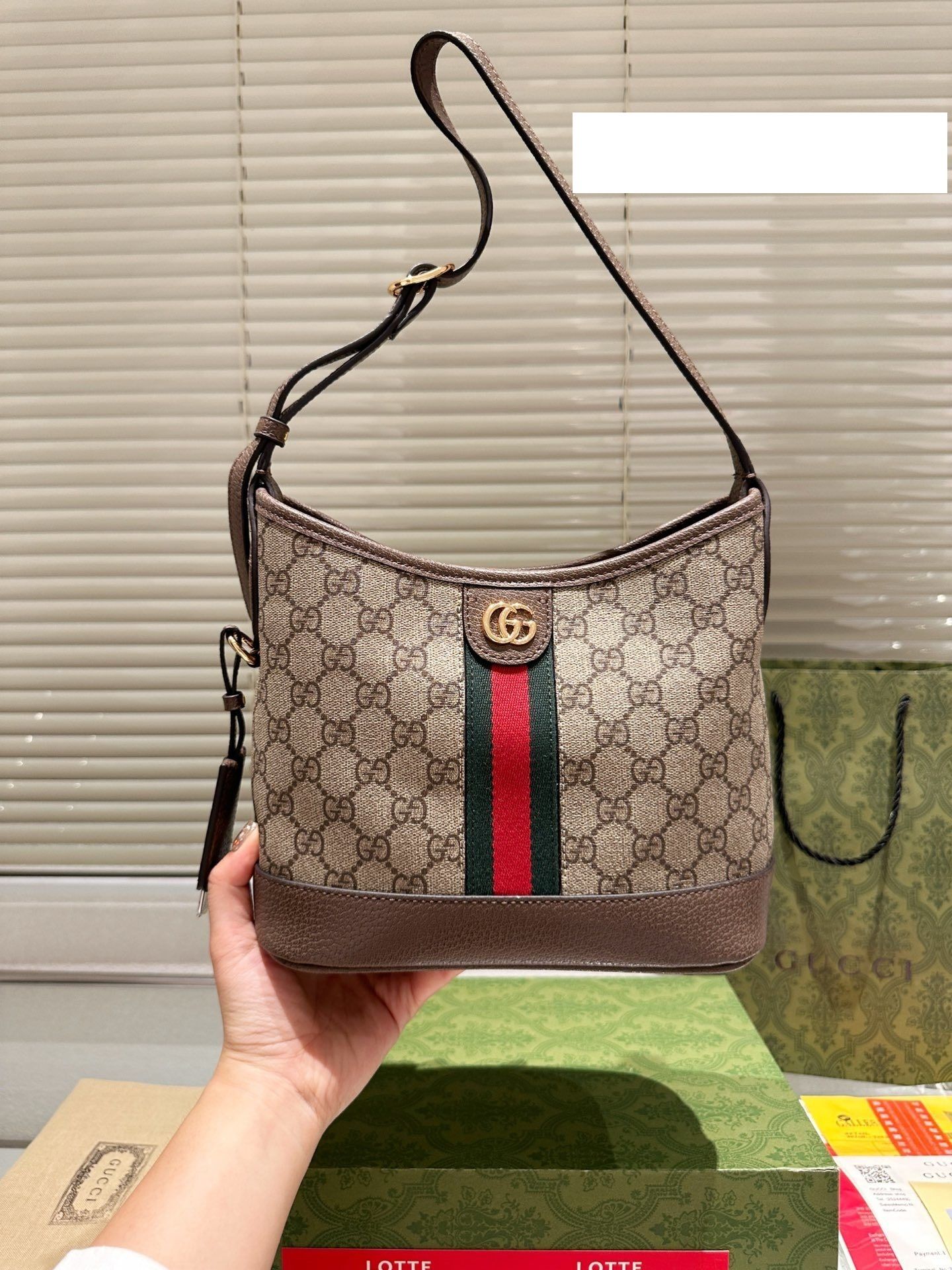 - Material: GG monogram canvas with premium leather trim