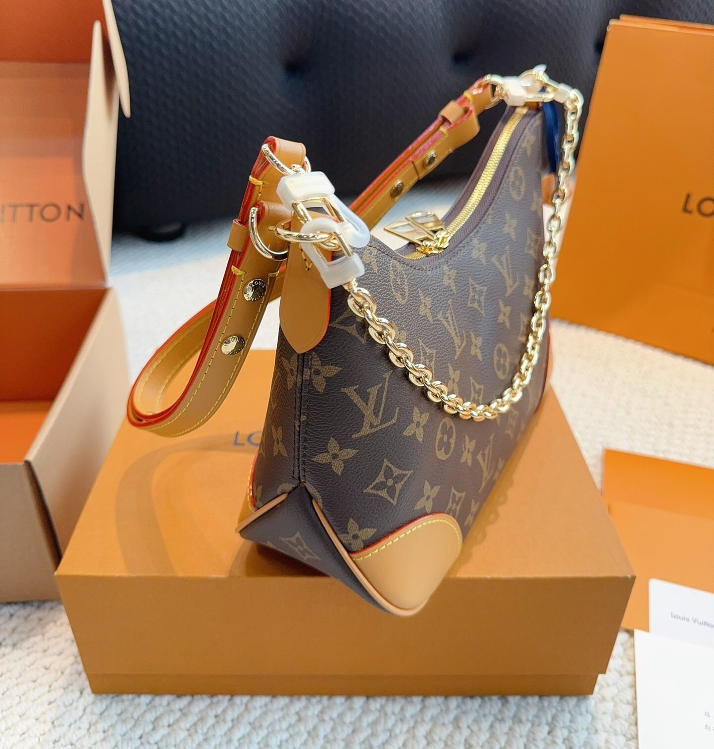 Finished with polished gold-tone hardware, the Boulogne PM radiates understated luxury that complements both casual outfits and sophisticated evening wear.