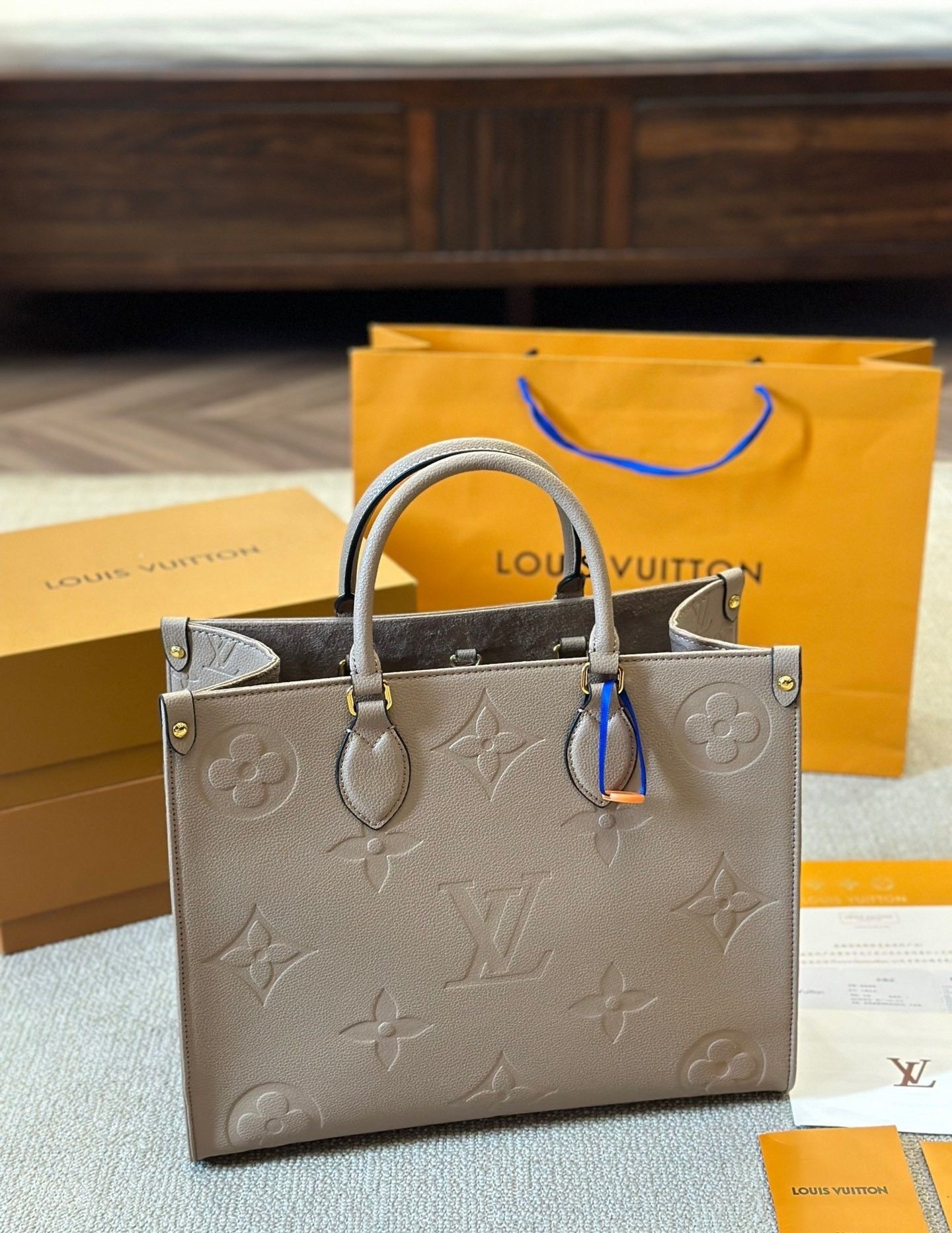 The LV OnTheGo MM LV717-1 stands out with its beautifully embossed Monogram motif pressed into supple grained cowhide leather. This sophisticated technique highlights the iconic Louis Vuitton pattern while creating a luxurious texture that enhances the bag’s overall elegance.