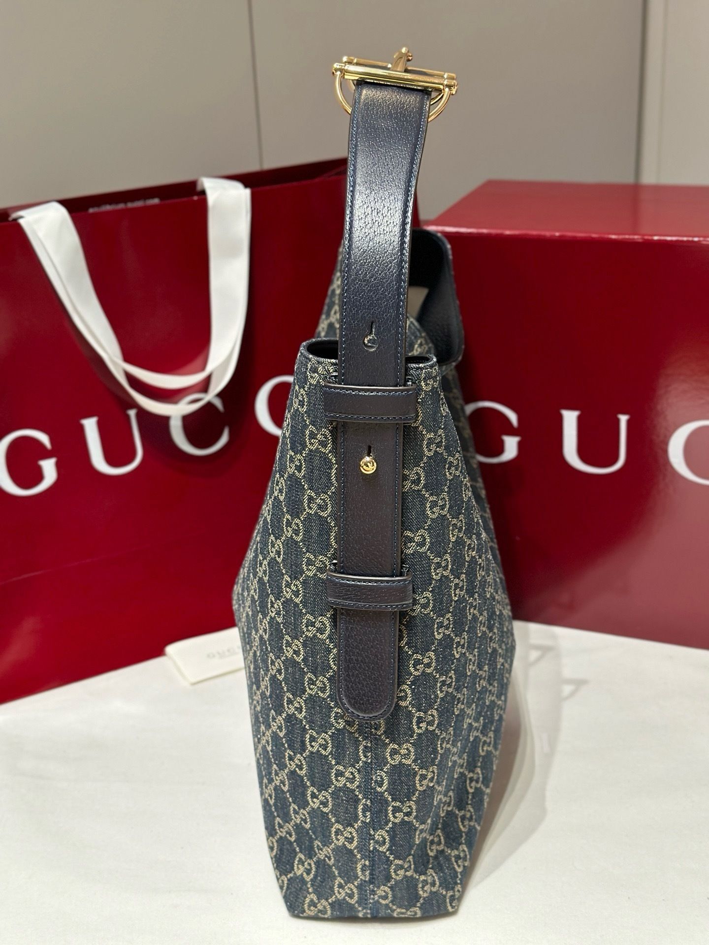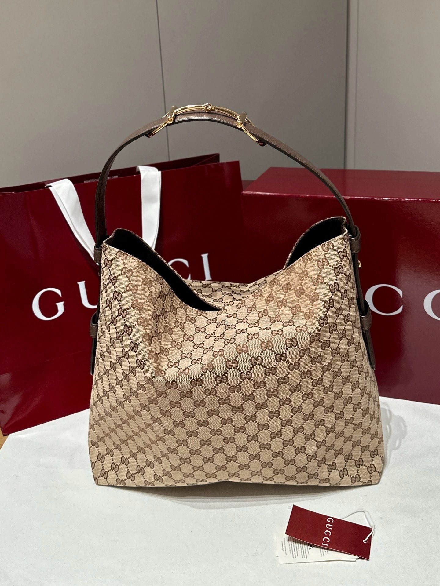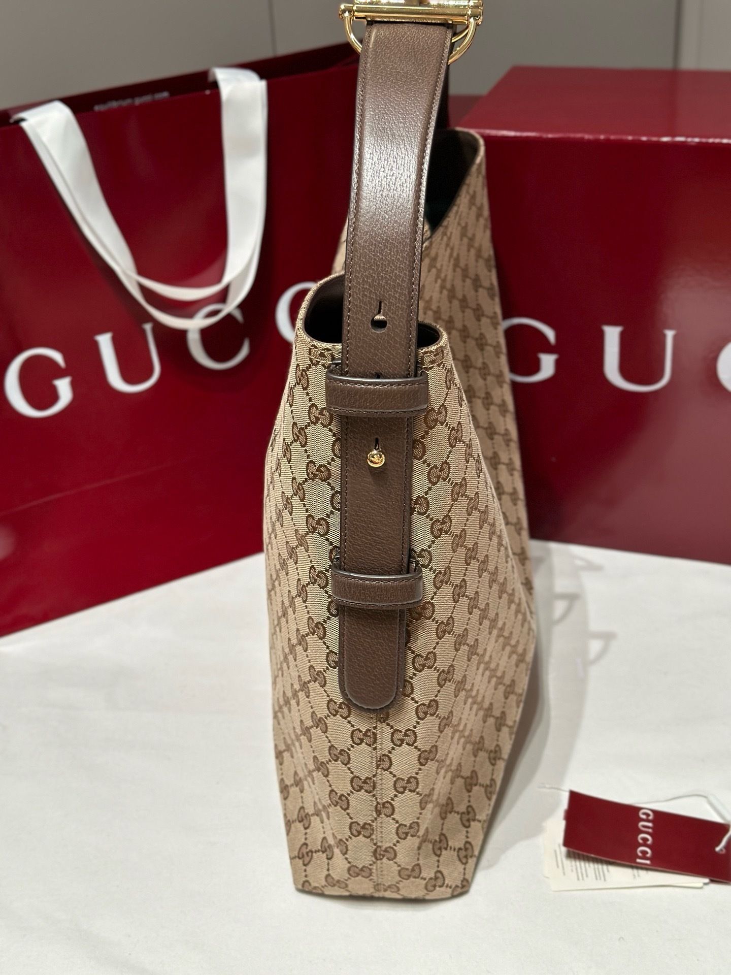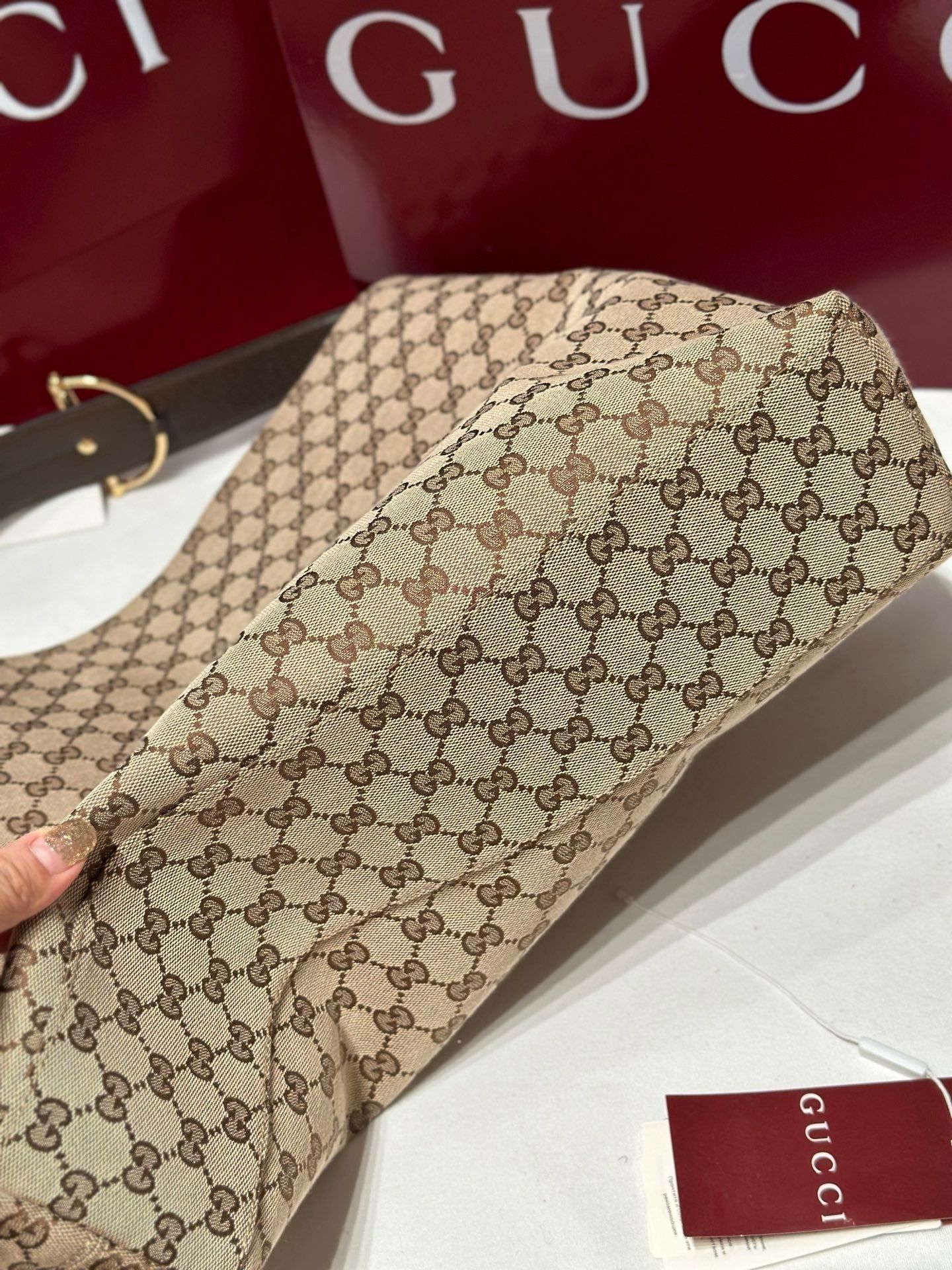 - Material:GG monogram canvas with premium leather trim