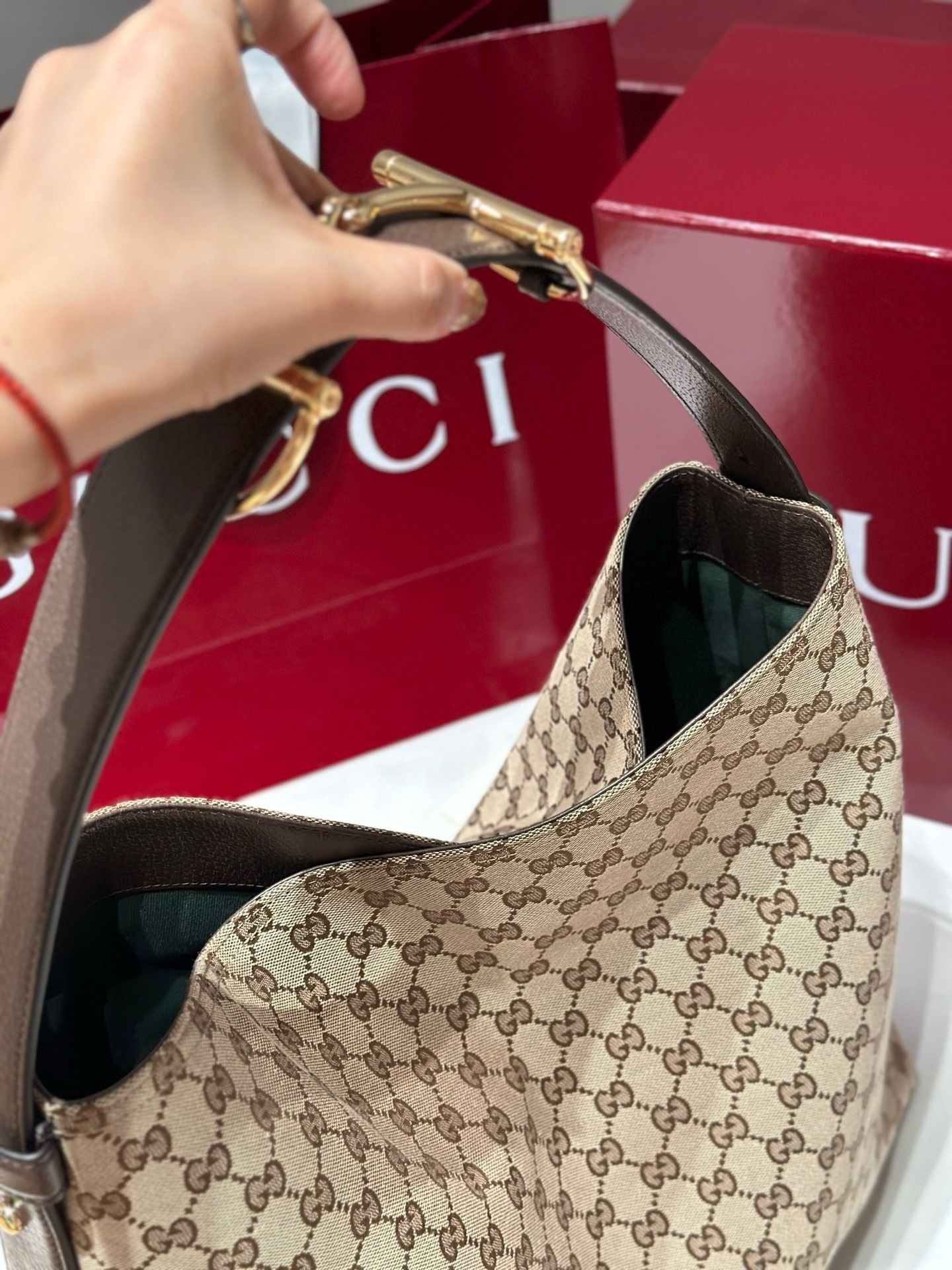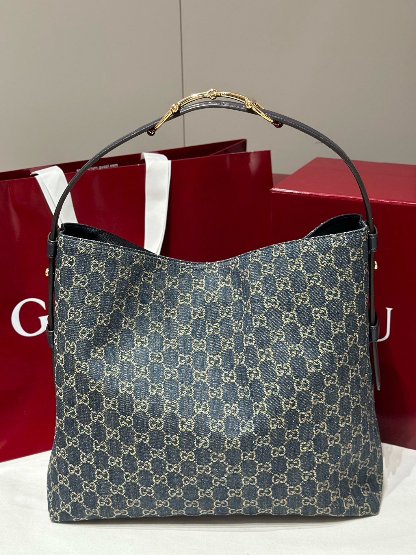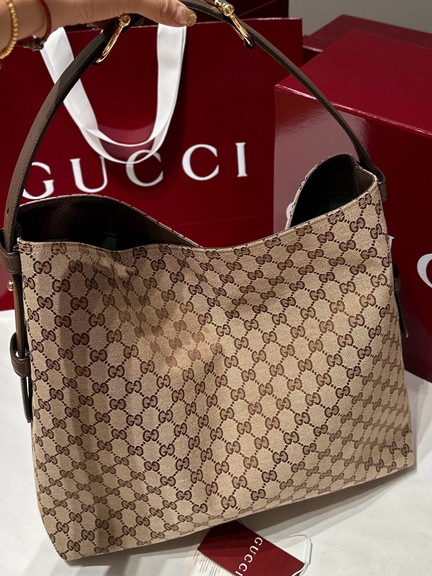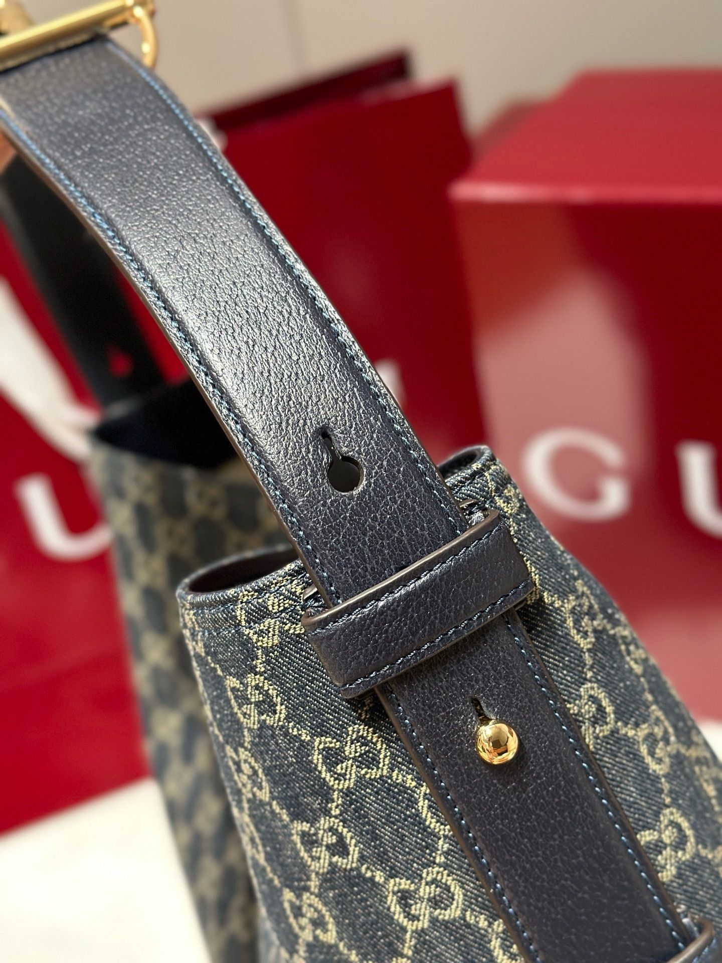 - Material:GG monogram canvas with premium leather trim