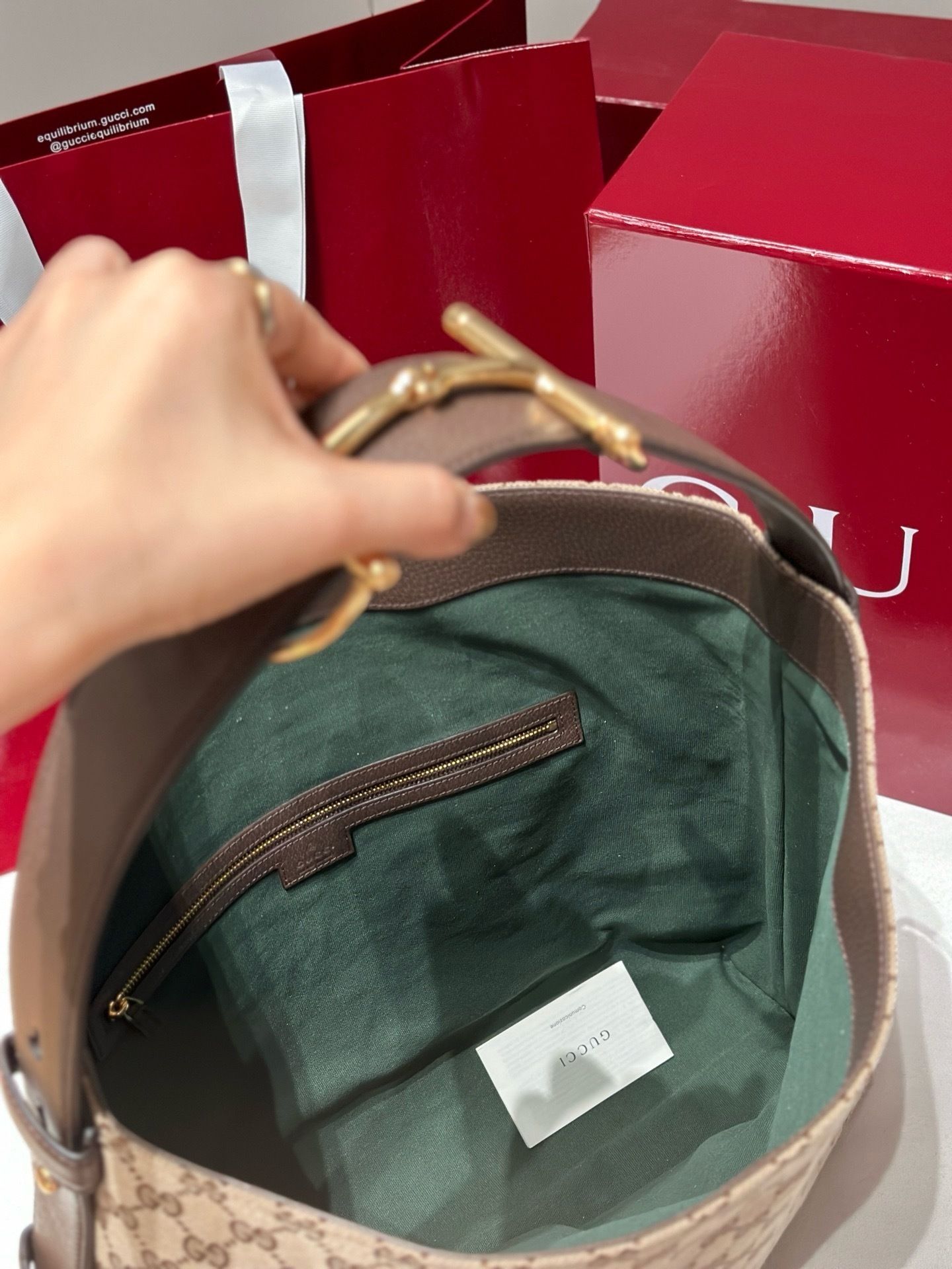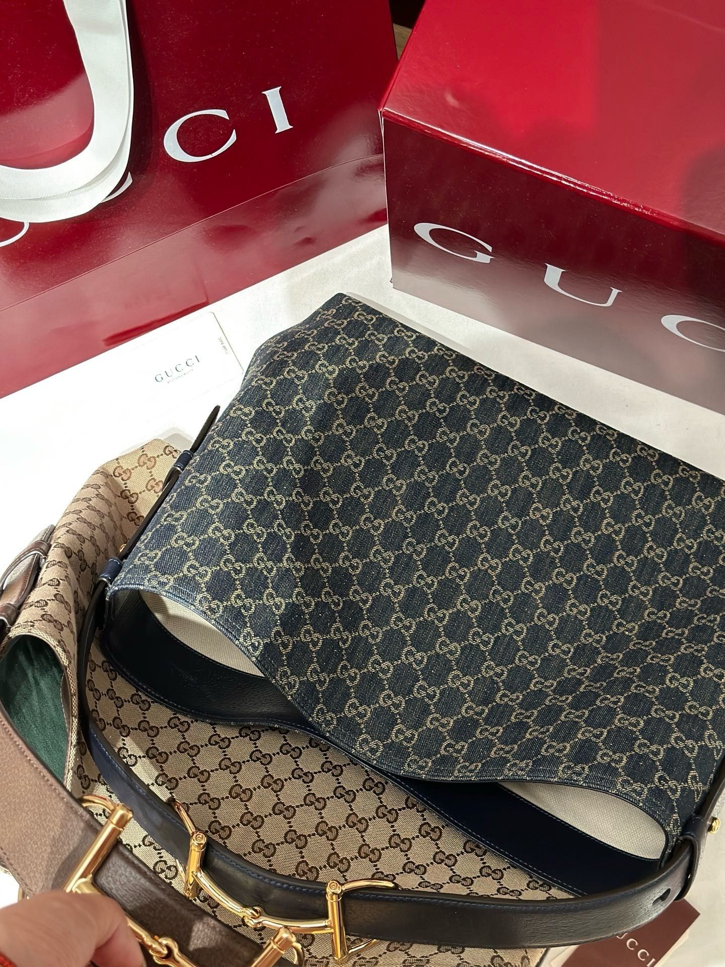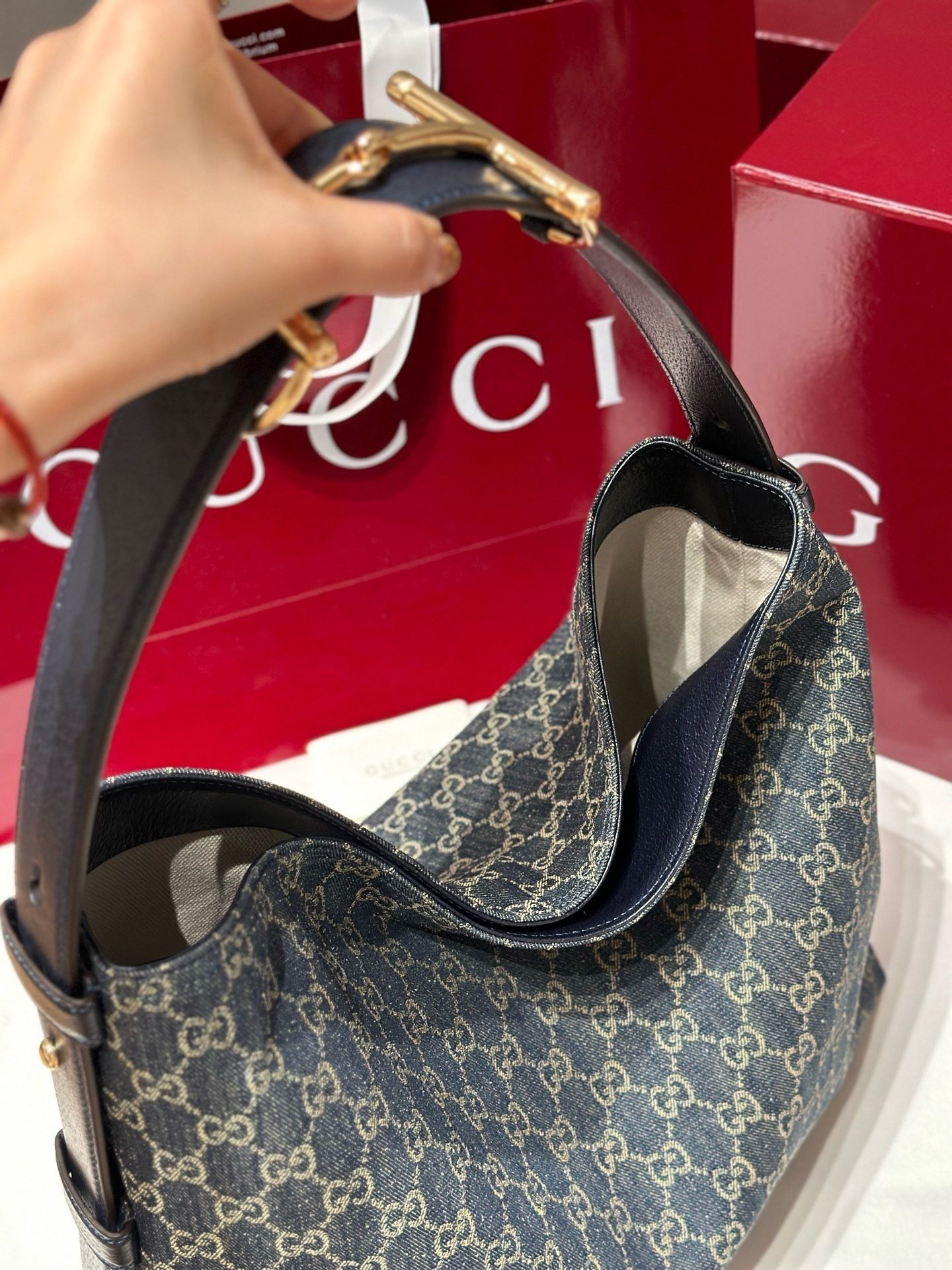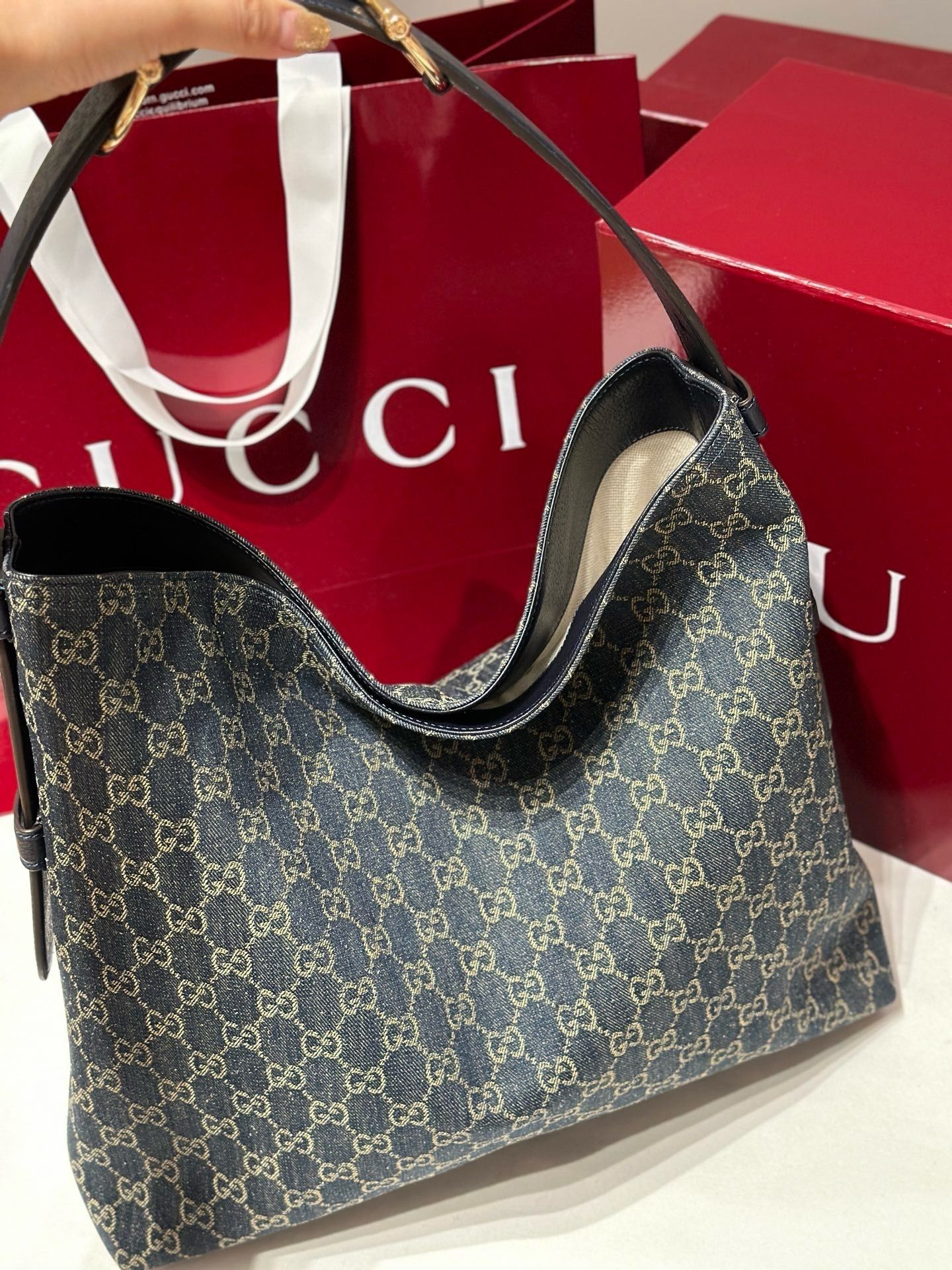 - Material:GG monogram canvas with premium leather trim