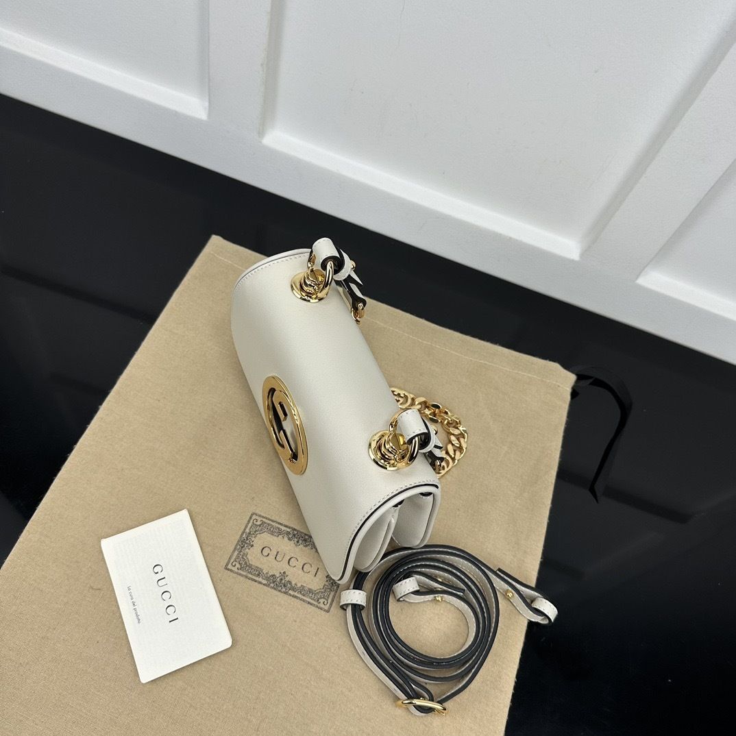 The GG Blondie Shoulder Bag highlights a distinctive emblem from the House archives, showcasing the rounded interlocking GG logo as a refined signature element. Crafted in a luminous white finish, this silhouette exudes understated sophistication and modern versatility.