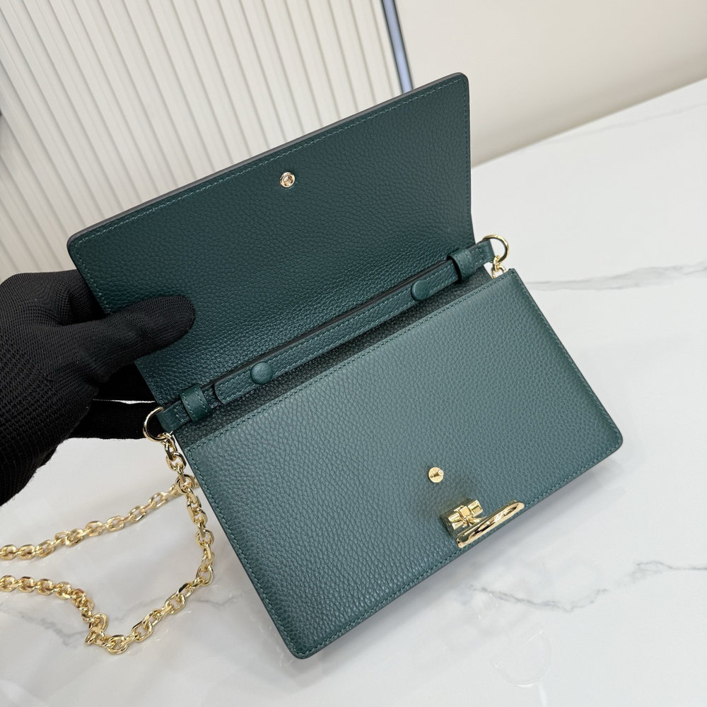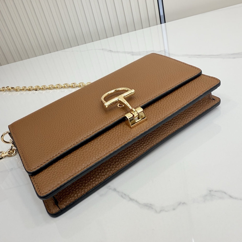 The signature Half Horsebit hardware in a radiant gold-toned finish highlights the front, paying tribute to classic heritage codes. The detachable chain strap allows for multiple styling options — wear it as a shoulder bag, crossbody, or carry it as a chic clutch for special occasions.