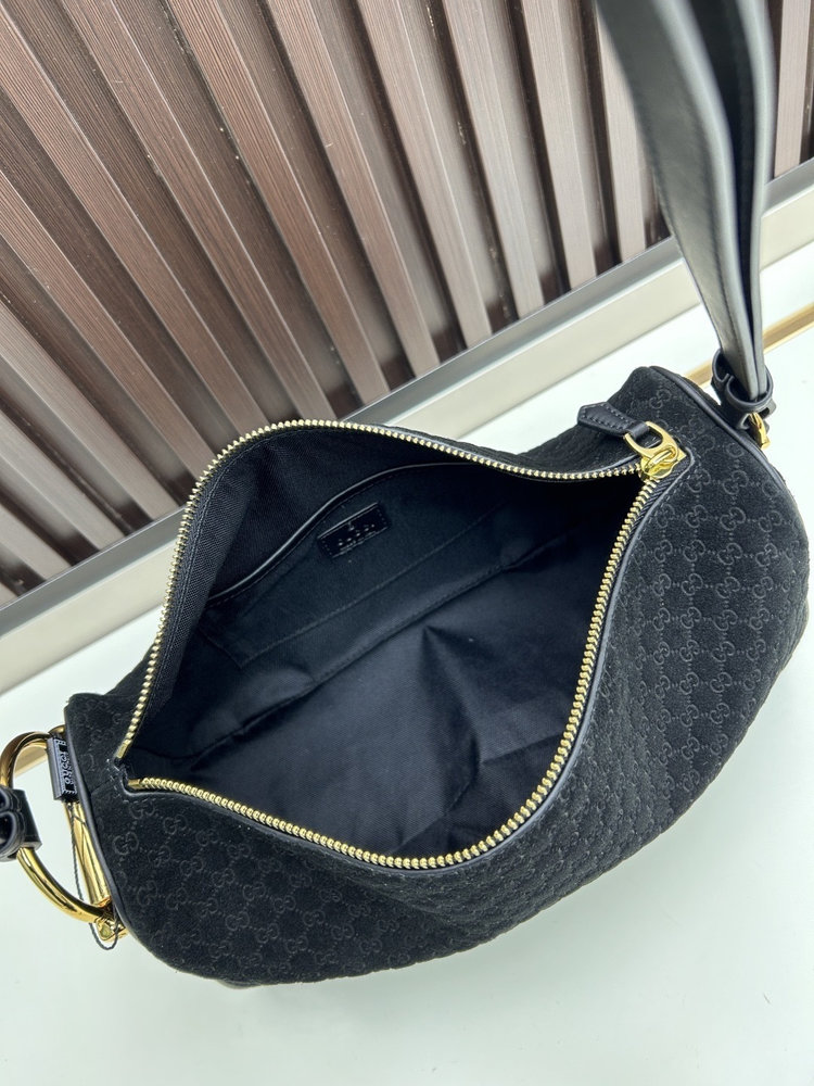 The standout feature is the signature Half Horsebit hardware, finished in a radiant gold tone that pays tribute to classic equestrian codes. Designed to sit comfortably under the arm, the streamlined shape offers practical interior space for essentials while maintaining a clean and sophisticated profile.