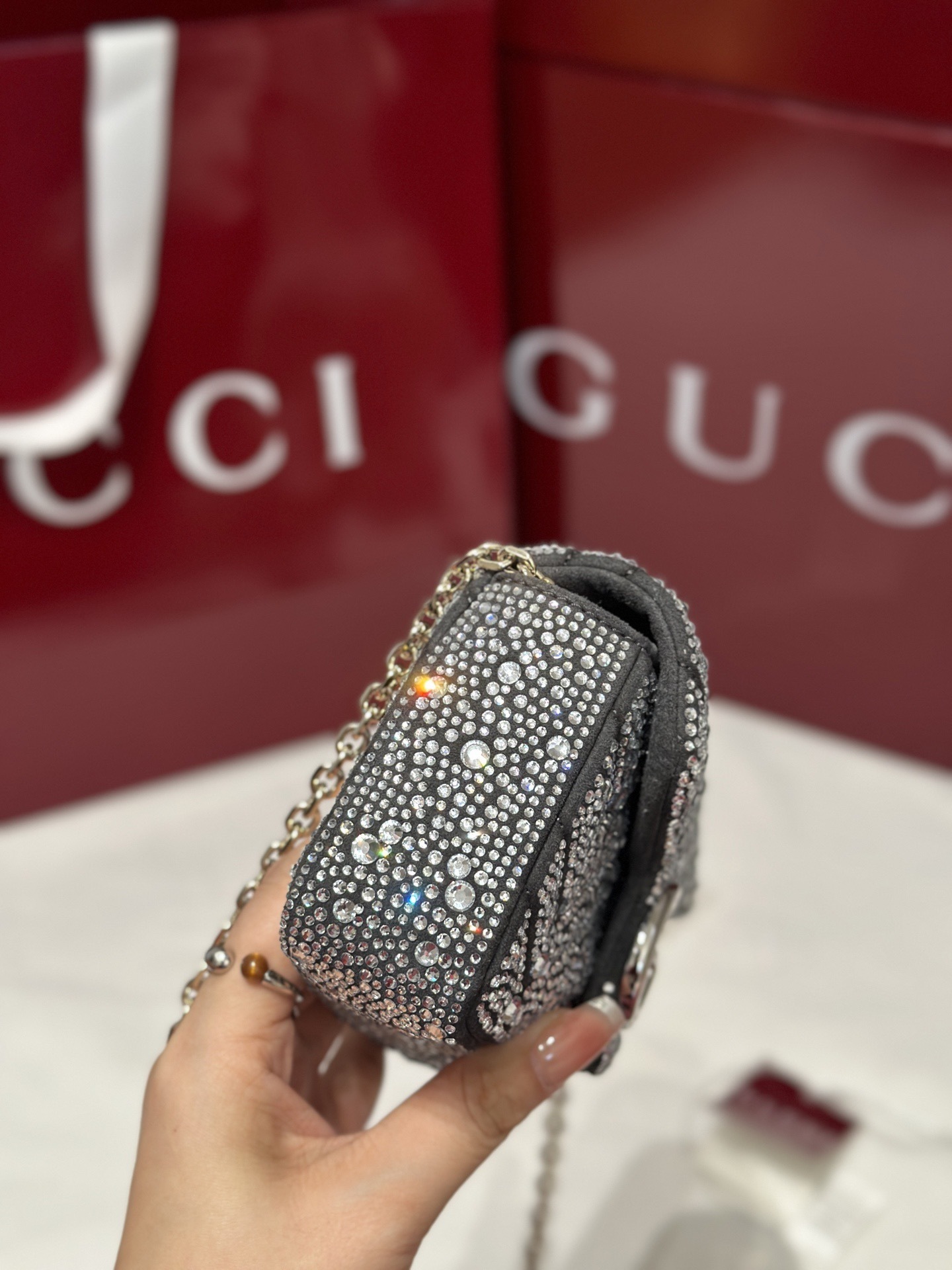 Introducing the dazzling standout from the season — the New Collection Fashion GG Marmont Crystals Handbag KK03550-2 merges iconic GG Marmont design with luminous crystal embellishments for a luxurious and eye-catching finish.