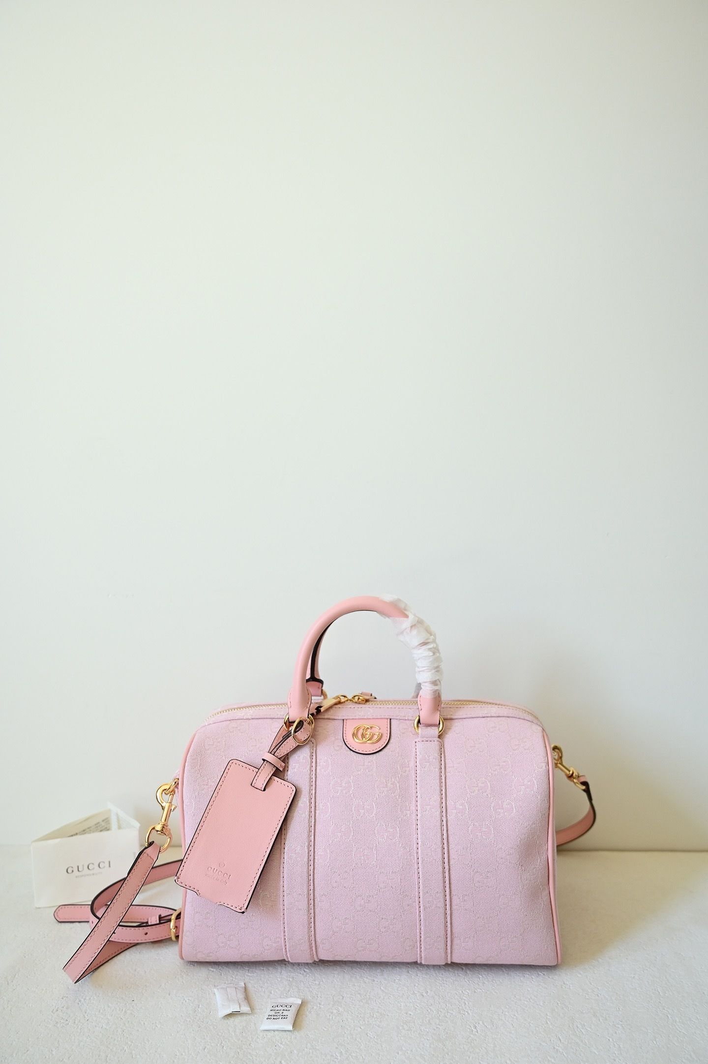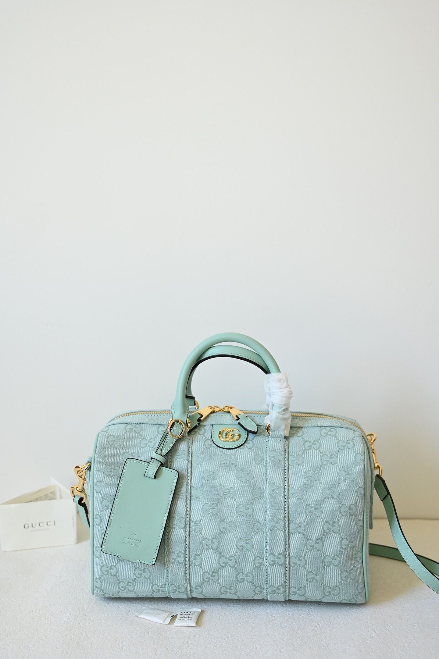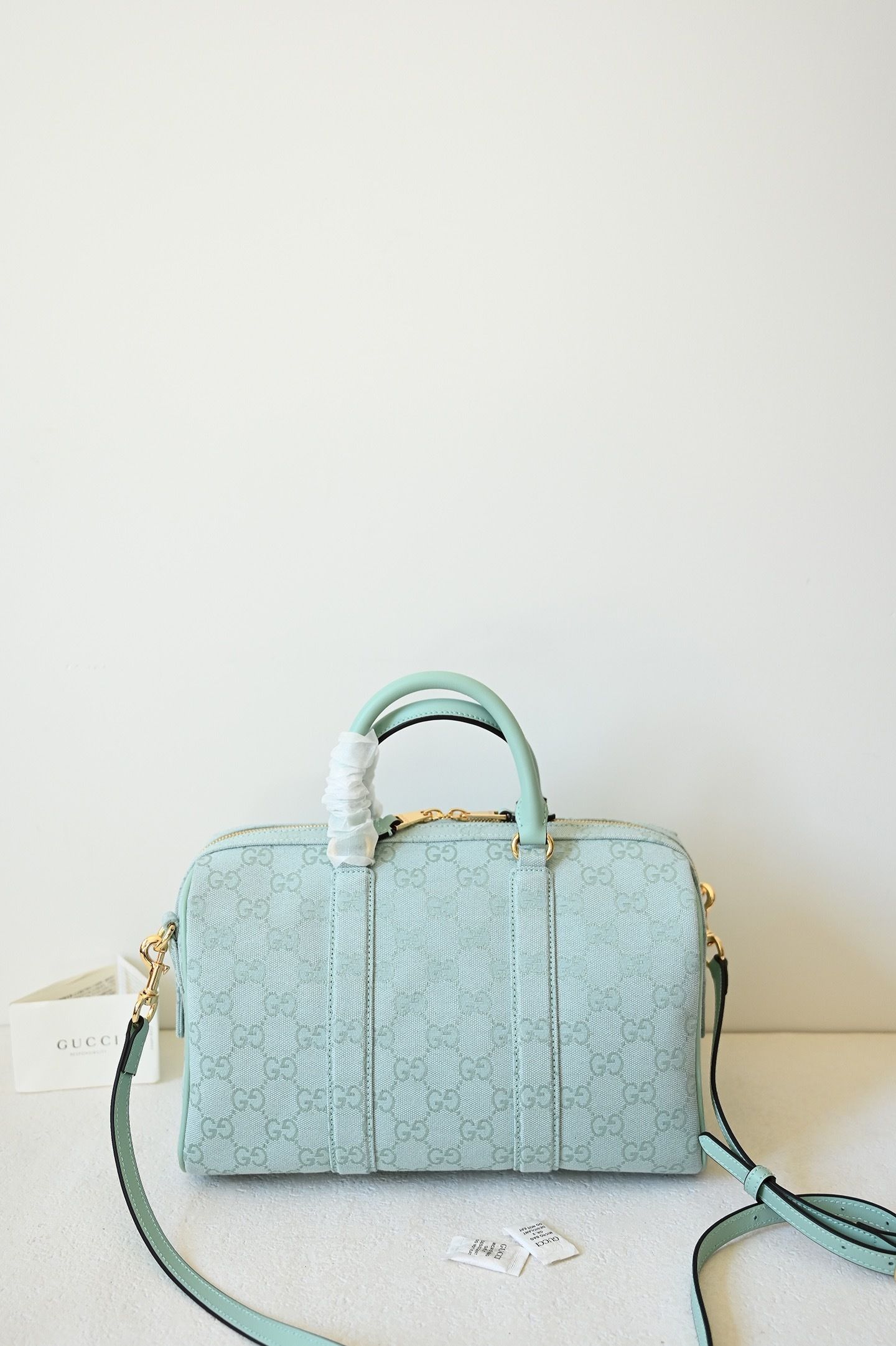 • Material: Premium embossed GG monogram with leather trim