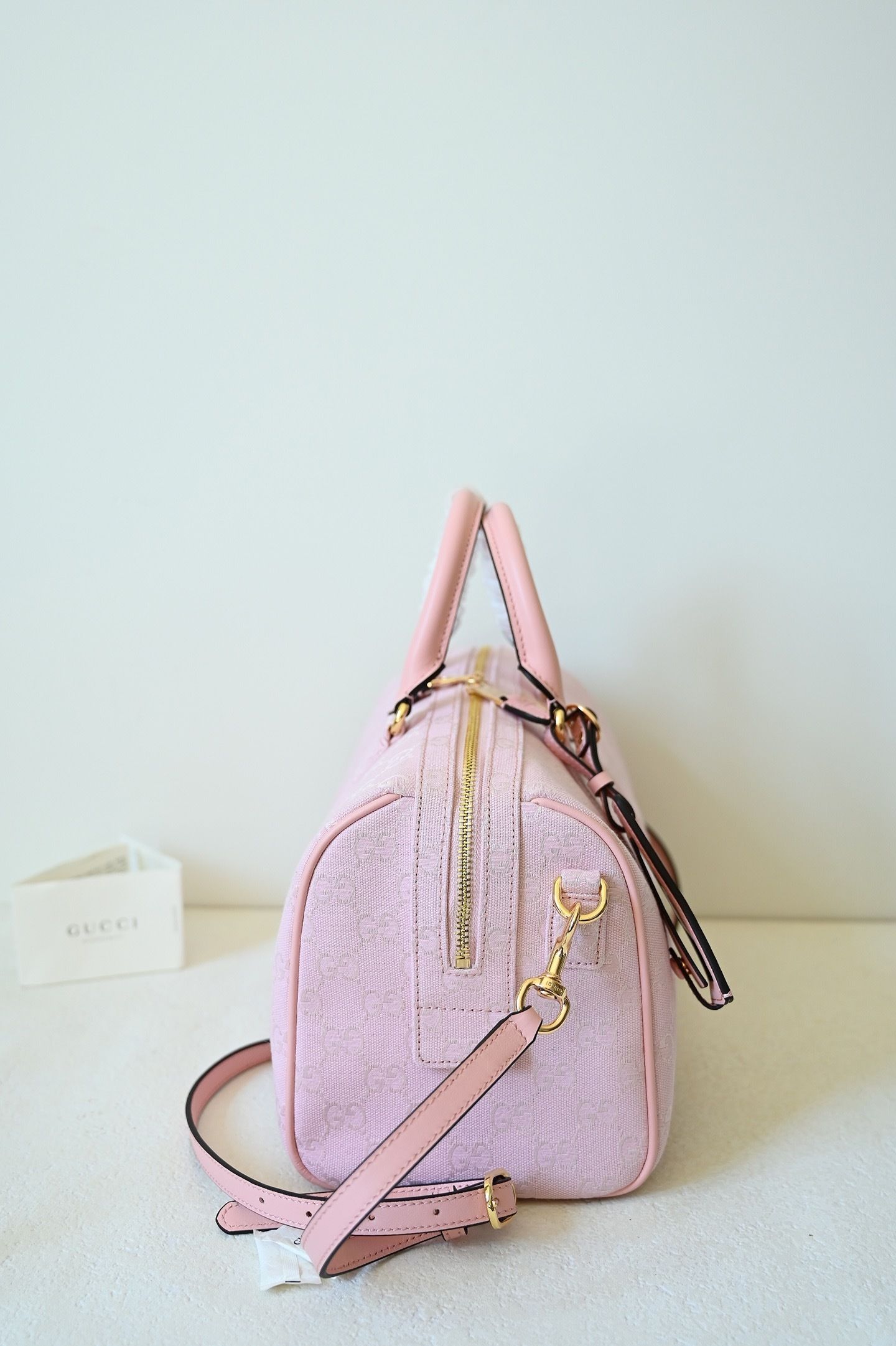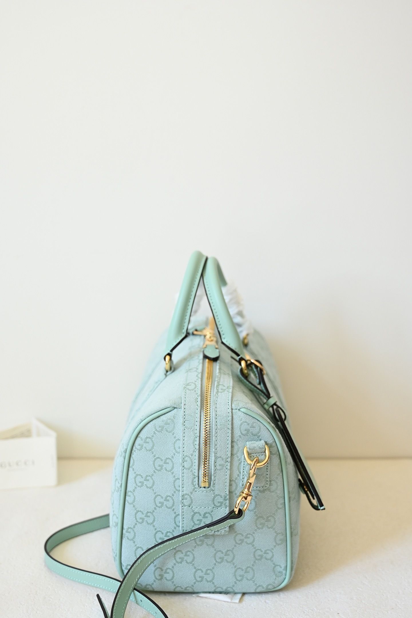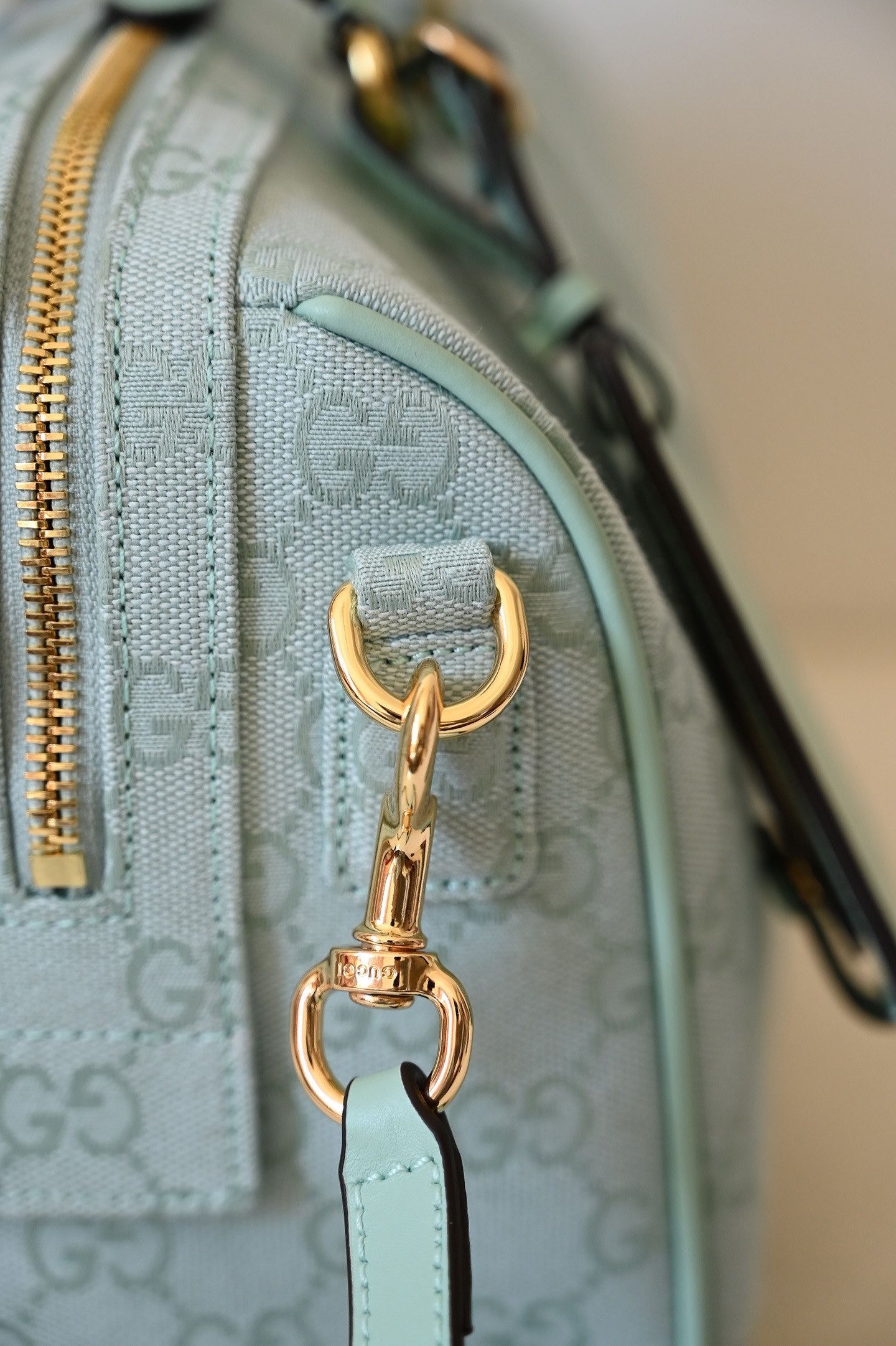 • Material: Premium embossed GG monogram with leather trim