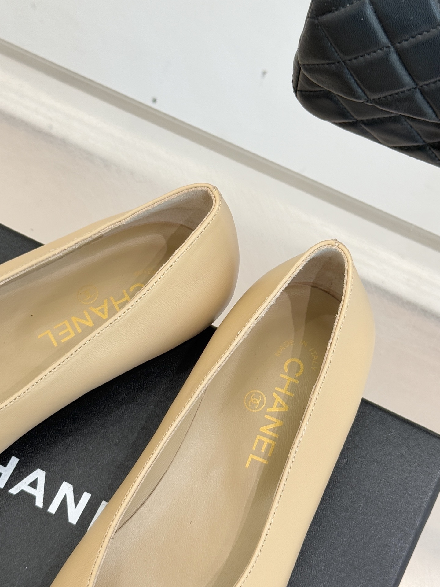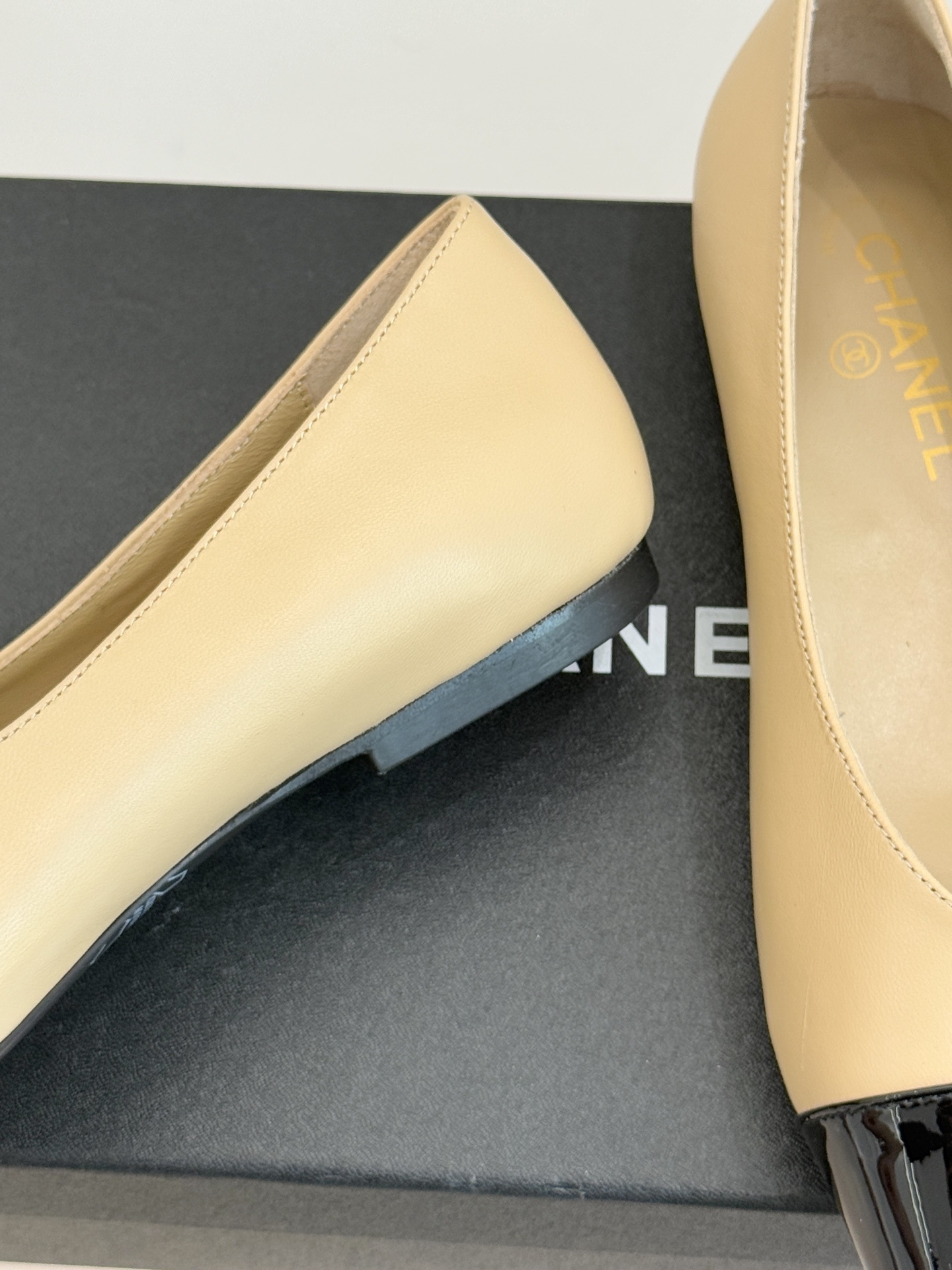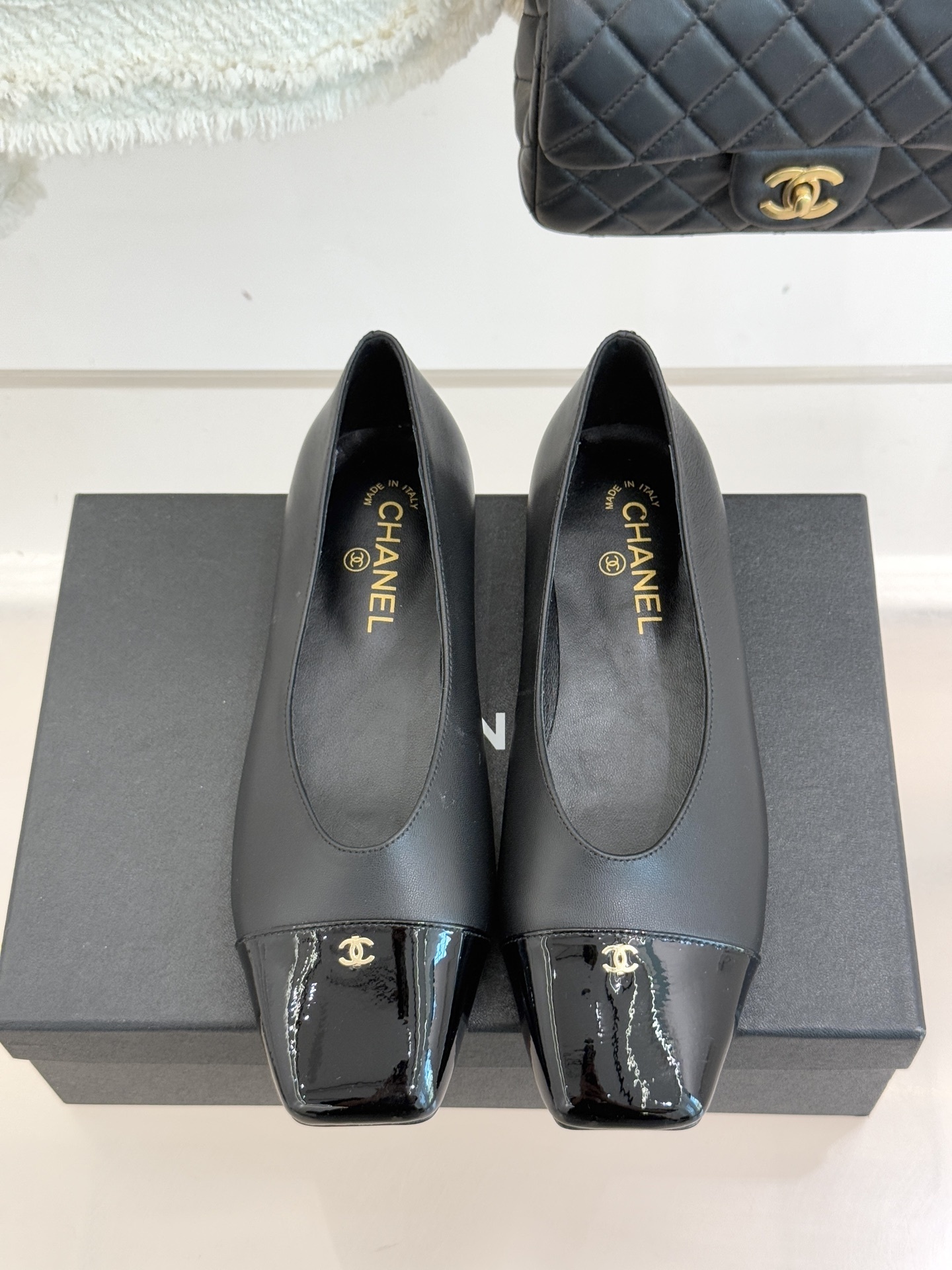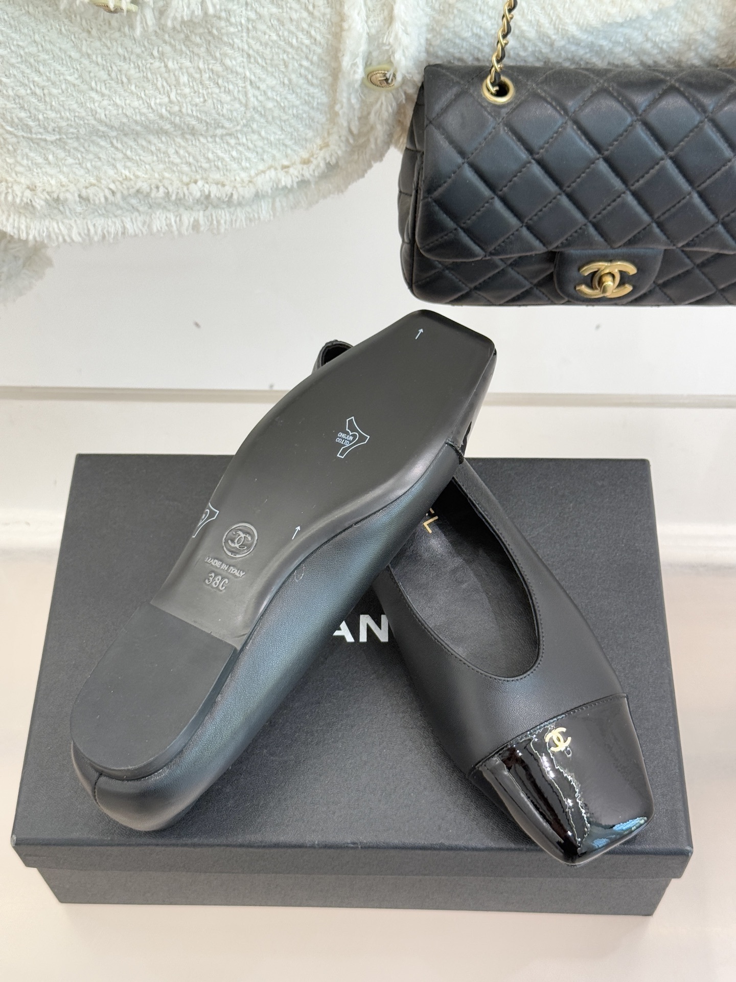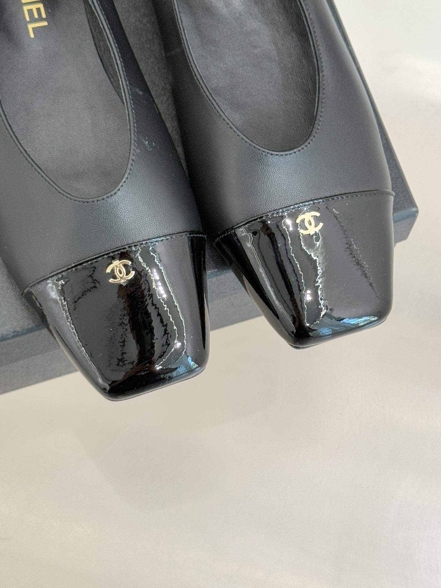 Chanel-inspired flats are known for their graceful silhouette and signature cap-toe design. This pair reinterprets that timeless look with a sleek square toe and glossy contrasting cap, creating a refined yet modern aesthetic. Available in neutral tones like black, white, and beige, these shoes are perfect for elevating any outfit.